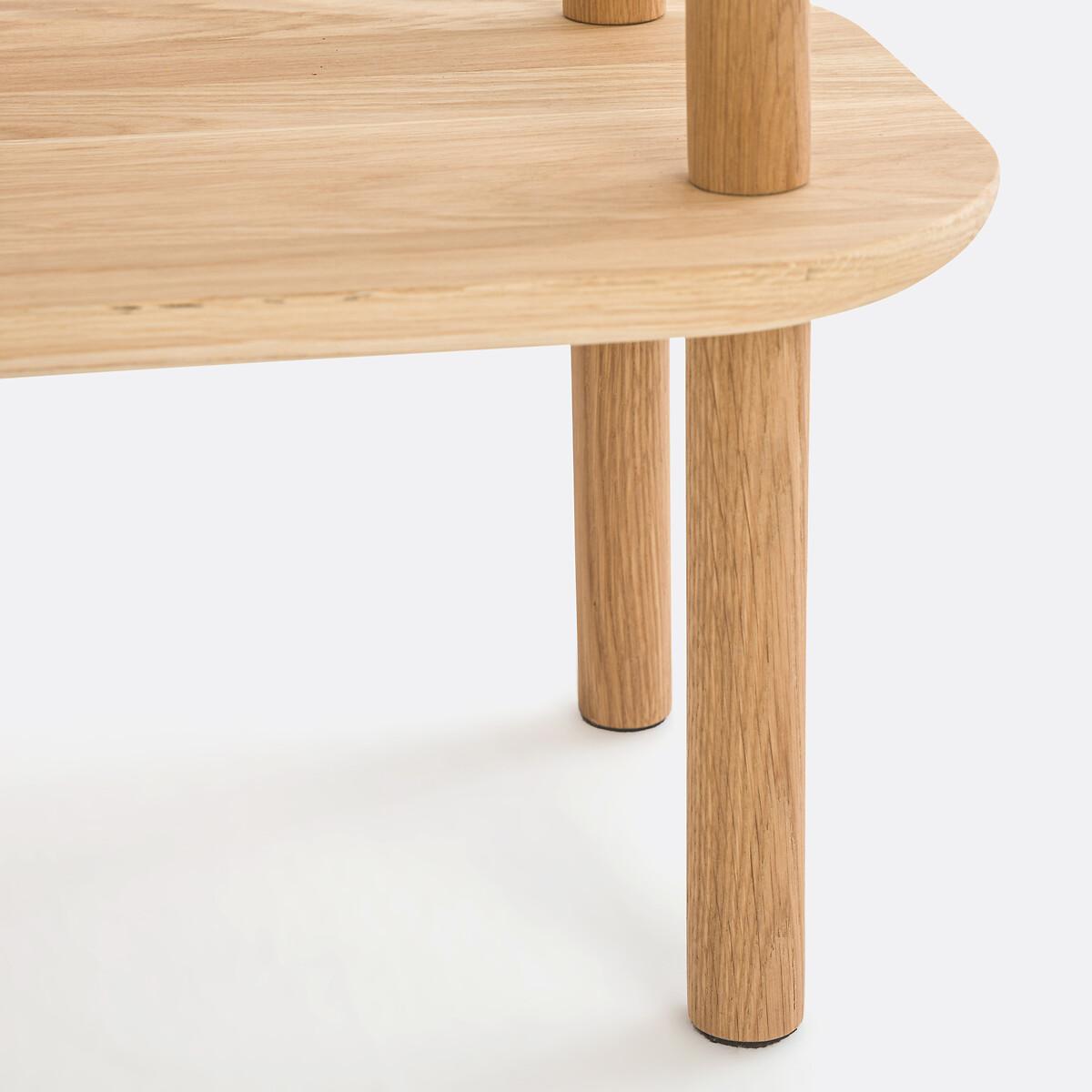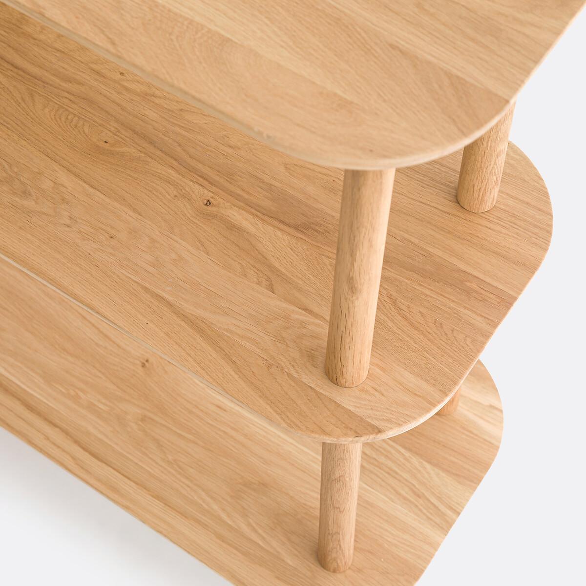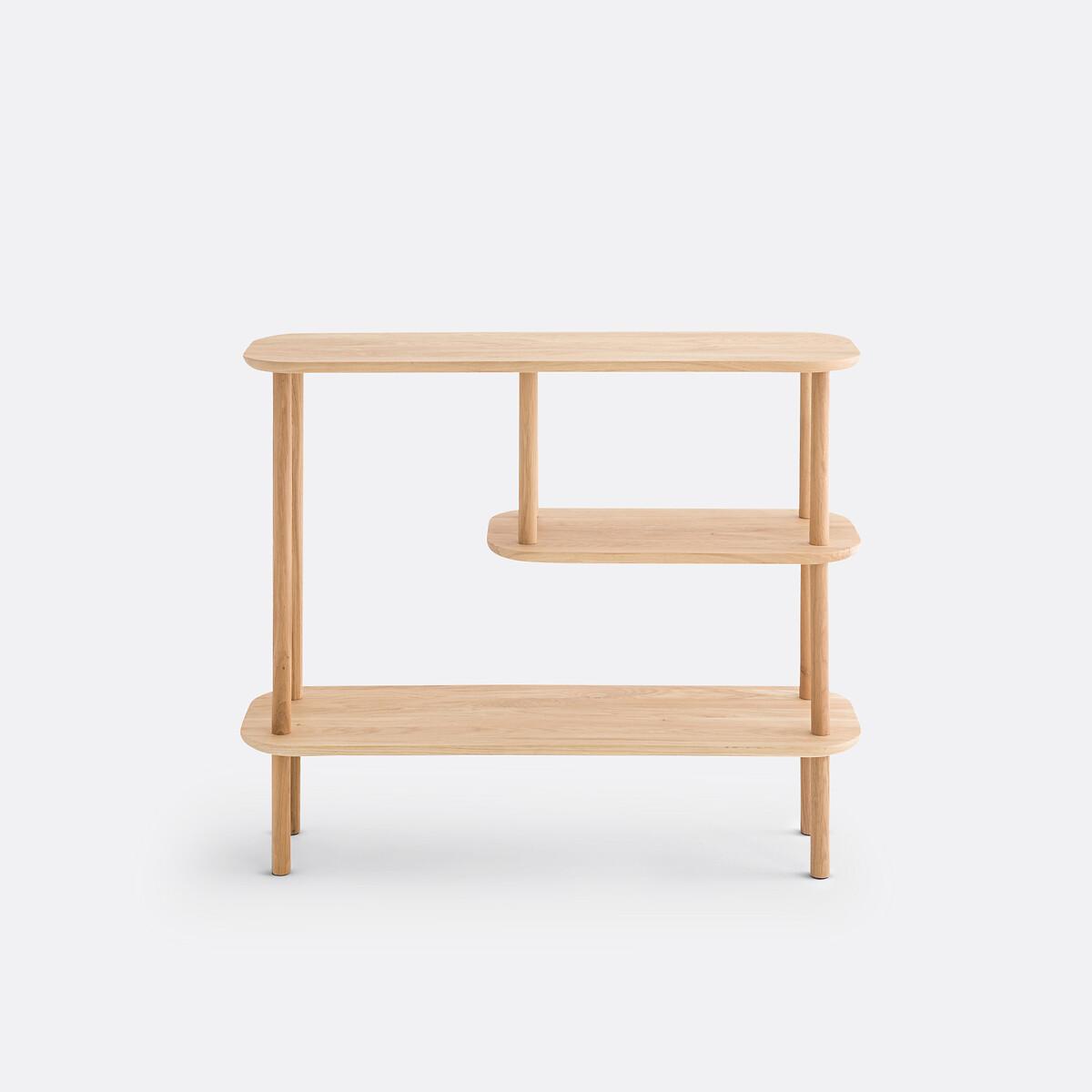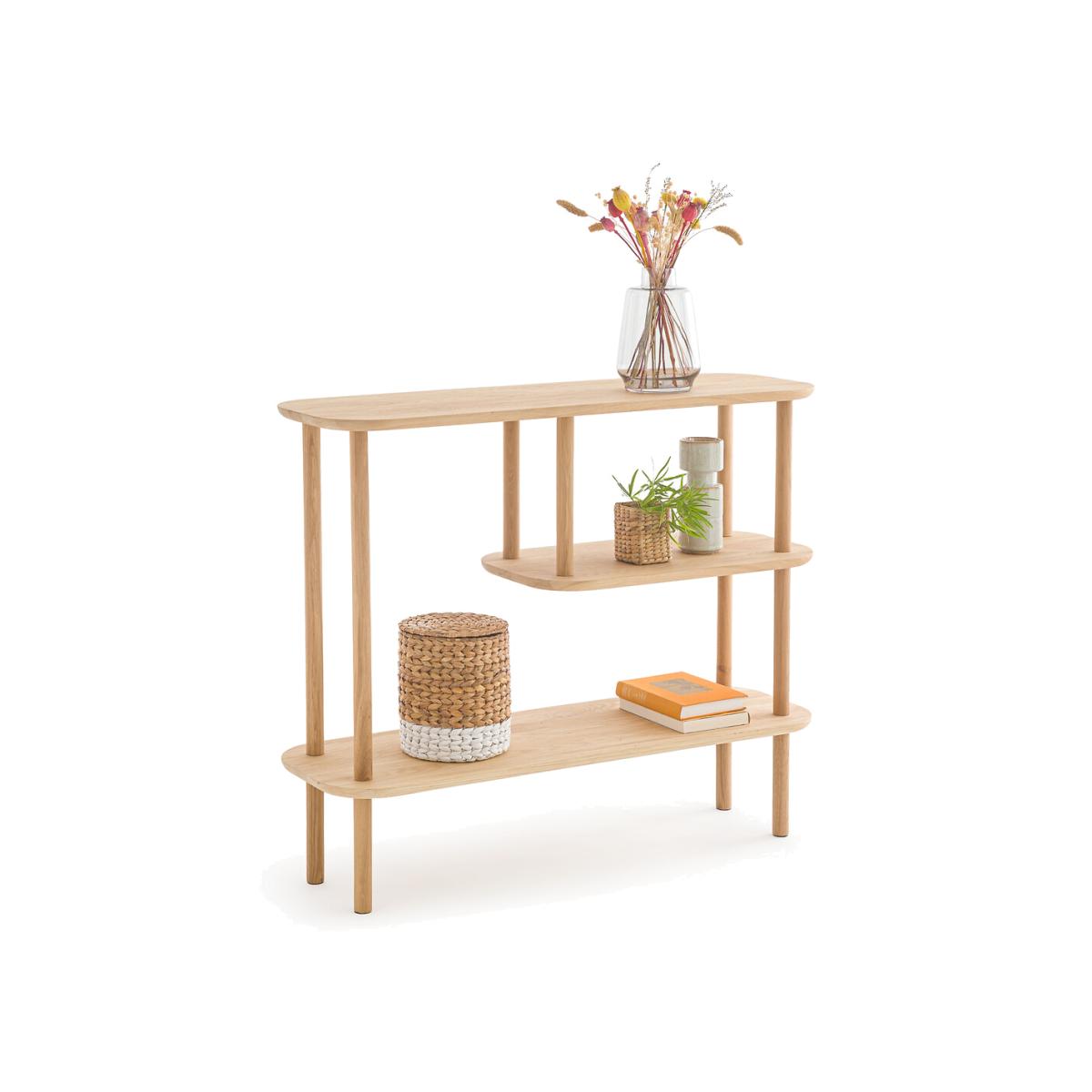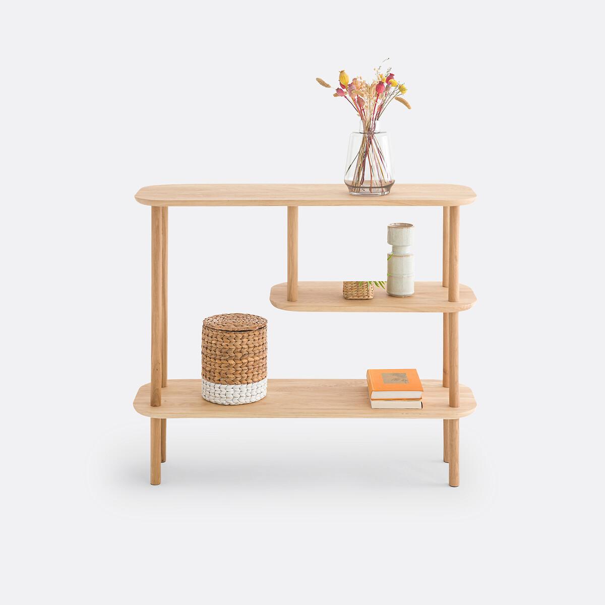 Scandinavian-style design, rounded corners and functional triple levels. The Crueso asymmetric console table fits easily into any interior style. Designed by La Redoute Interiors. Made in Europe. Product Details • Tops and base in solid oak, FSC® certified, acrylic varnish finish • Top with bevelled edge • Tapered legsDimensions. Overall • Length: 100cm • Height: 82cm • Depth: 32cm. Usable space • Height between each shelf: 27.5cm • Central shelf length: 60cm • Height of legs : 20cmDelivery:. This product is sold for self-assembly. It will be delivered to your door. Note! Please check that all access points are large enough to accommodate your delivery (doors, stairs, lifts). • Made in Europe. • WOOD FROM SUSTAINABLY MANAGED FORESTS. FSC® certified wood comes from forests that are environmentally, socially and economically well managed. Dimensions and weight of parcel1 parcel • L106 x H16 x D38cm. 34kg