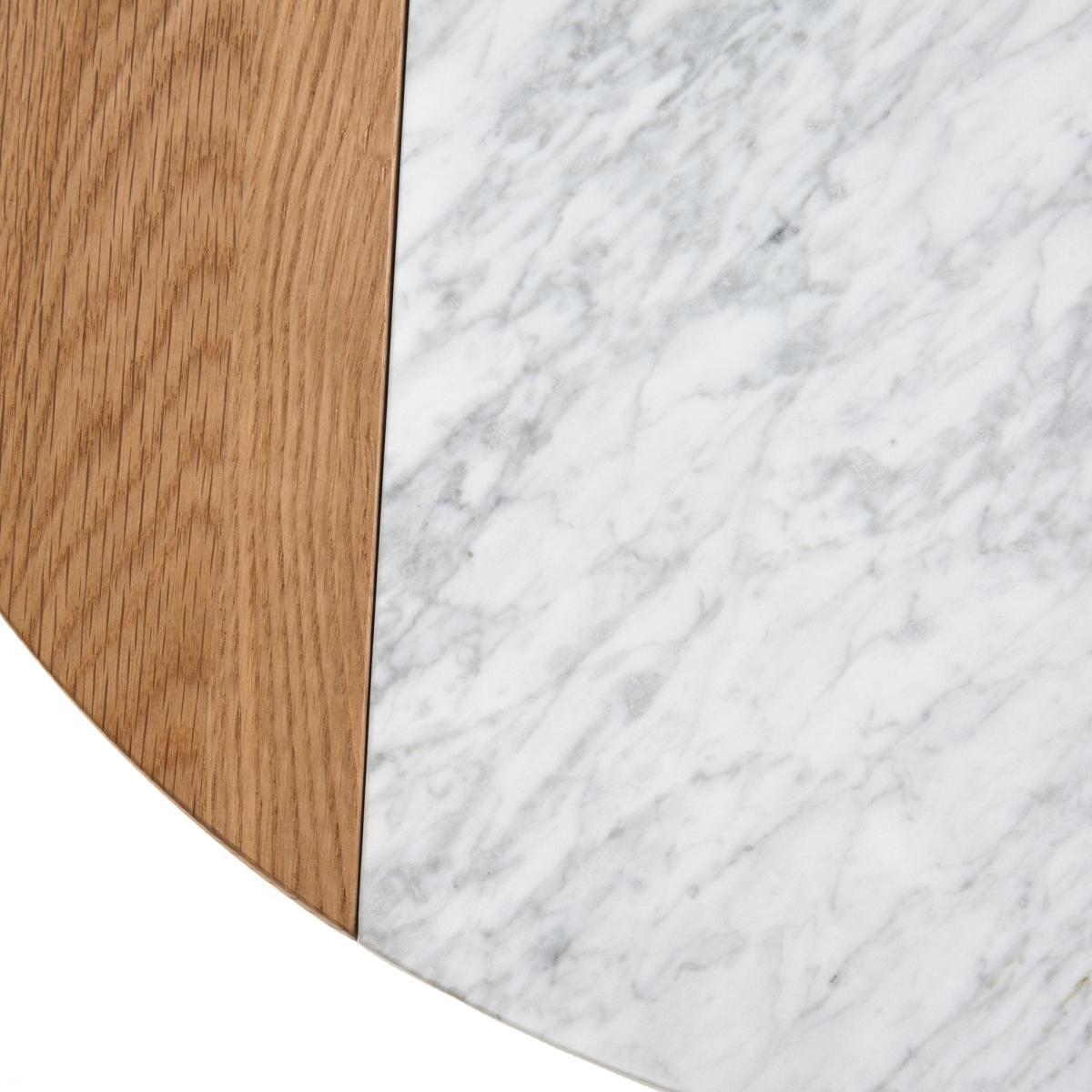Elegant and practical with its white marble and solid oak top, the Crueso coffee table gives you the opportunity to twist your interior in the blink of an eye