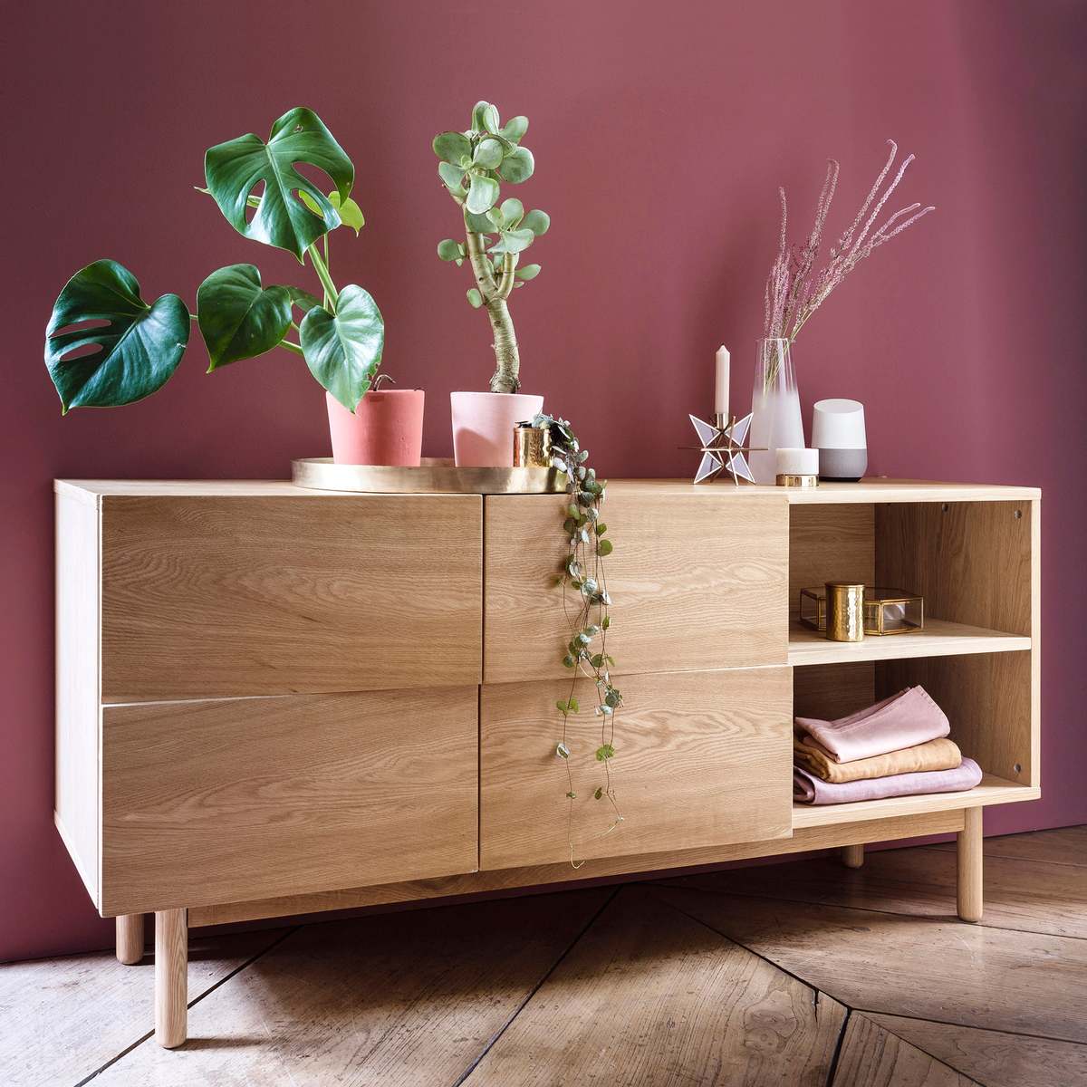 I love this piece because its Scandi style and oak finish make it incredibly versatile, blending seamlessly into both modern and pared-back interiors. It works well in living rooms, dining areas, or hallways, providing practical storage without overwhelming the space. A good styling tip is to keep surfaces simple-think minimal vases or a couple of framed prints-to emphasise its clean lines. For a more layered look, add textured baskets or decorative objects on the open shelves, which can help create visual interest while maintaining functionality. Overall, a well-chosen sideboard like this adds warmth and timeless appeal to various interior schemes.