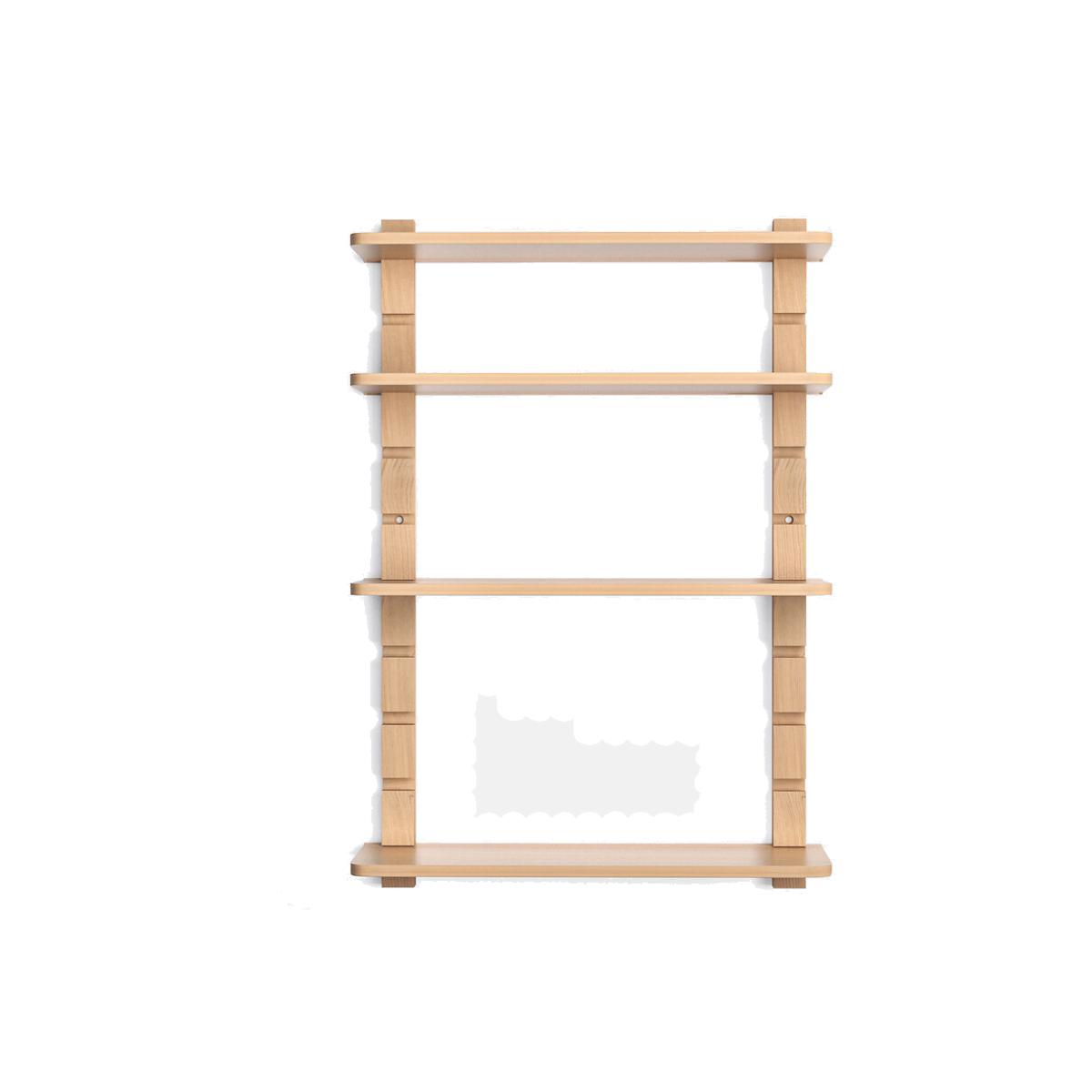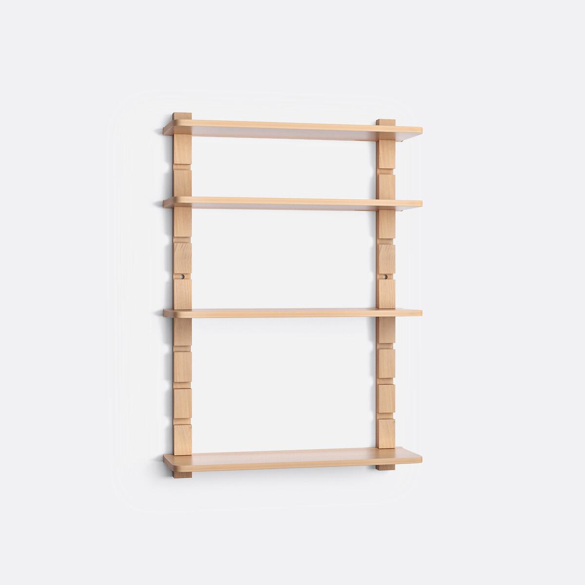 Crueso 4-shelf unit. With 4 removable and height adjustable shelves, the Crueso shelf unit meets all your decorative needs. Product Details • Solid oak with a nitrocellulose varnish finish • Removable and height adjustable shelves based on a rack support system • 4 shelves, 2 wall mountsDimensions. Total: • Width: 70cm • Height: 100cm • Depth: 21cm • Weight: 10.5kgDelivery:. Assembly required. Available for home delivery. Note! Please check that all access points are large enough to accommodate your delivery (doors, stairs, lifts). • WOOD FROM SUSTAINABLY MANAGED FORESTS. FSC® certified wood comes from forests that are environmentally, socially and economically well managed. Parcel Dimensions:1 parcel • L110x H13,5 x D35,5 cm • 13kg