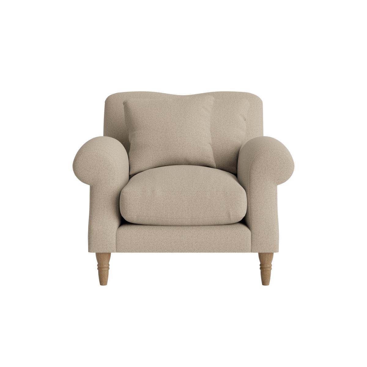 The Crumpet armchair is a charming piece that brings comfort and a touch of classic style to various interiors. I love how its timeless design adapts effortlessly from traditional to more contemporary settings, making it a versatile option for the living room or a cosy reading nook. It works wonderfully styled with layered textiles like textured cushions or a soft throw to enhance its inviting feel. For practical tips, pair it with a statement side table or place it next to a window to create a welcoming corner. Its neutral tone makes it easy to coordinate with a range of colour schemes, while its sturdy wooden legs add a subtle hint of craftsmanship that grounds the overall look.