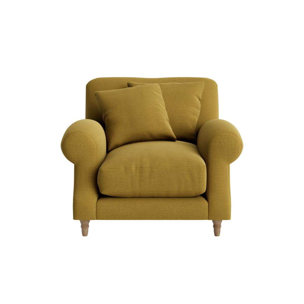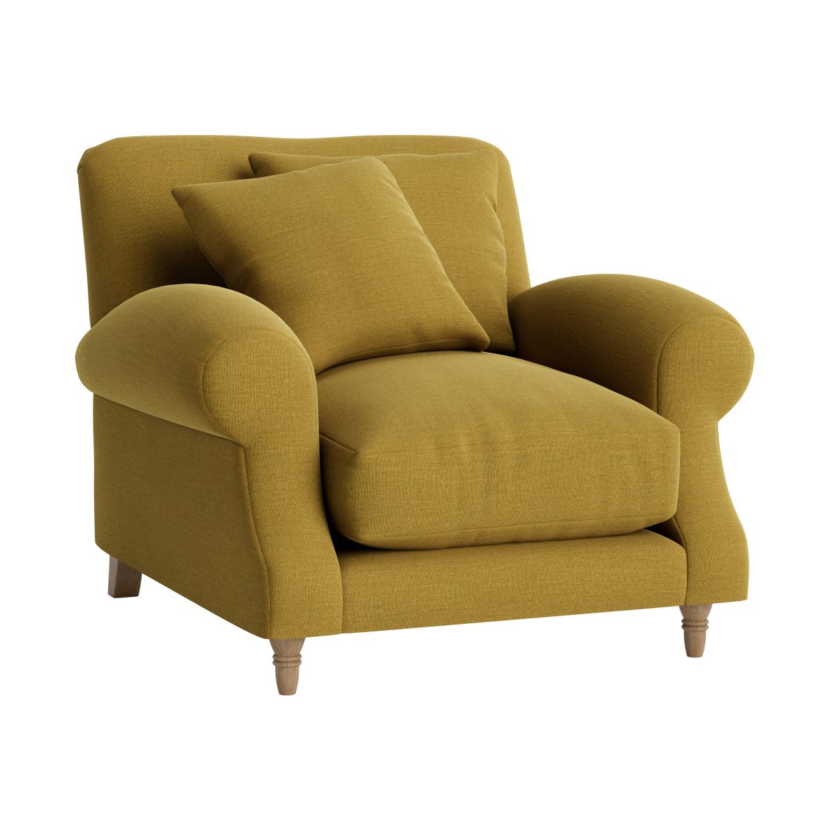 I love this armchair for its substantial, plush silhouette and versatile mustard tone, which can bring warmth and a pop of colour to both traditional and contemporary interiors. It works particularly well in cosy living rooms or reading nooks, where its inviting form invites you to sink in. To style it effectively, pair with neutral or patterned cushions to add texture, and consider placing it alongside layered rugs or antique furniture for a curated look. Practical tips include keeping accessories minimal to let the chair's shape shine or dressing it up with a soft throw for added comfort and style. Its sturdy build and timeless charm make it a practical choice for anyone wanting a statement, yet functional statement piece.