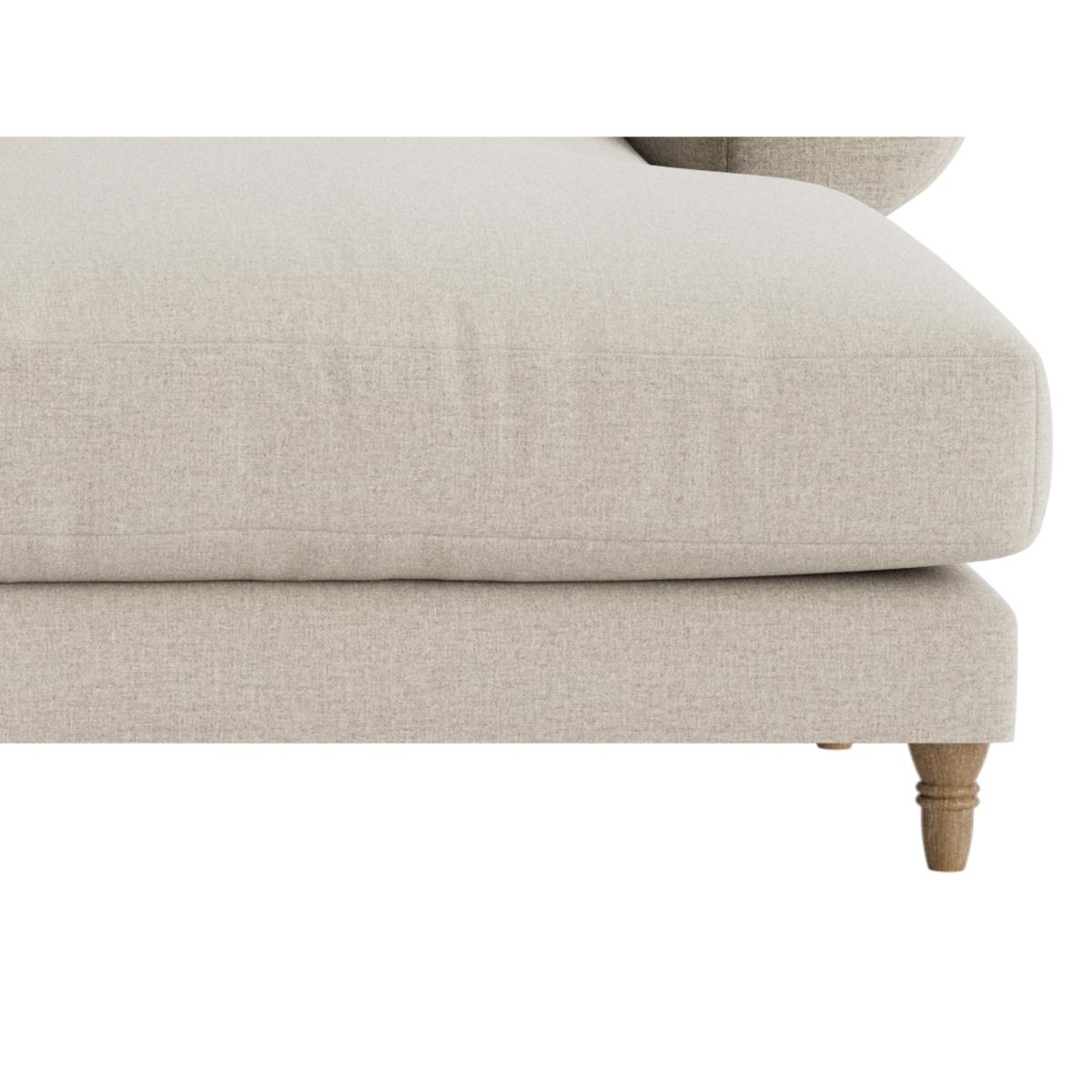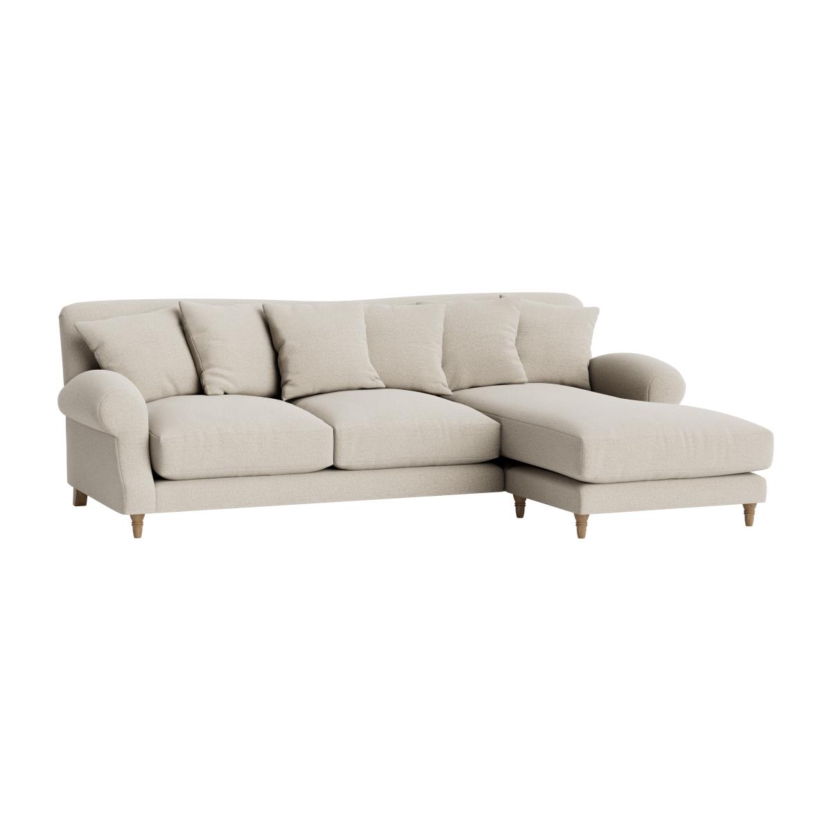I love the Crumpet sofa for its versatile and timeless appeal, making it a great fit in both contemporary and traditional interiors. Its neutral tone offers a clean, understated look that can be easily styled with colourful cushions or throws to add personality. This corner sofa works especially well in open-plan living spaces or larger rooms, maximising seating without overwhelming the space. Practical styling tips include pairing it with a statement rug, layering with textured fabrics, and accessorising with mix-and-match cushions for a cosy, inviting feel. Its understated elegance and comfortable proportions make it a reliable centrepiece that can adapt to various decor schemes - ideal for creating a relaxed, lived-in vibe.