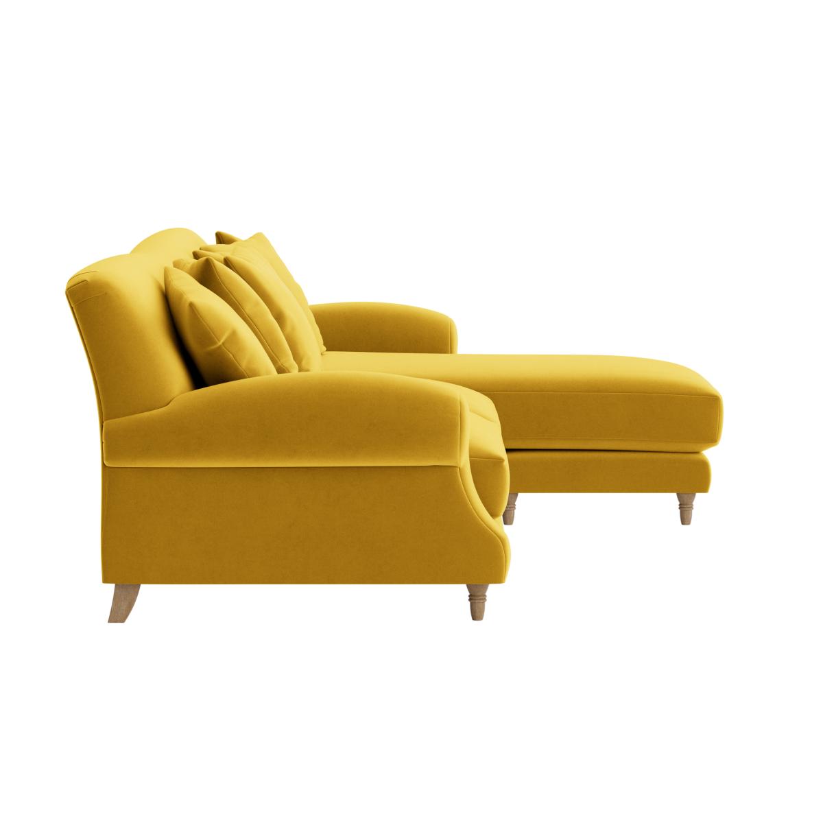 I love this corner sofa for its bold colour and versatile design. The little chaise adds extra lounging space without overwhelming the room, making it ideal for both open-plan living or more compact spaces. It works well in modern interiors when paired with sleek, minimal accessories, but can also bring a cheerful pop of colour to more eclectic or vintage-styled rooms. Practical styling tips include balancing the vibrant yellow with neutral cushions and soft throws, or introducing complementary tones like navy or grey for a more refined look. Its simple, clean lines make it adaptable to various interior schemes, and positioning it centrally helps maximise socialising and comfort in your living space.