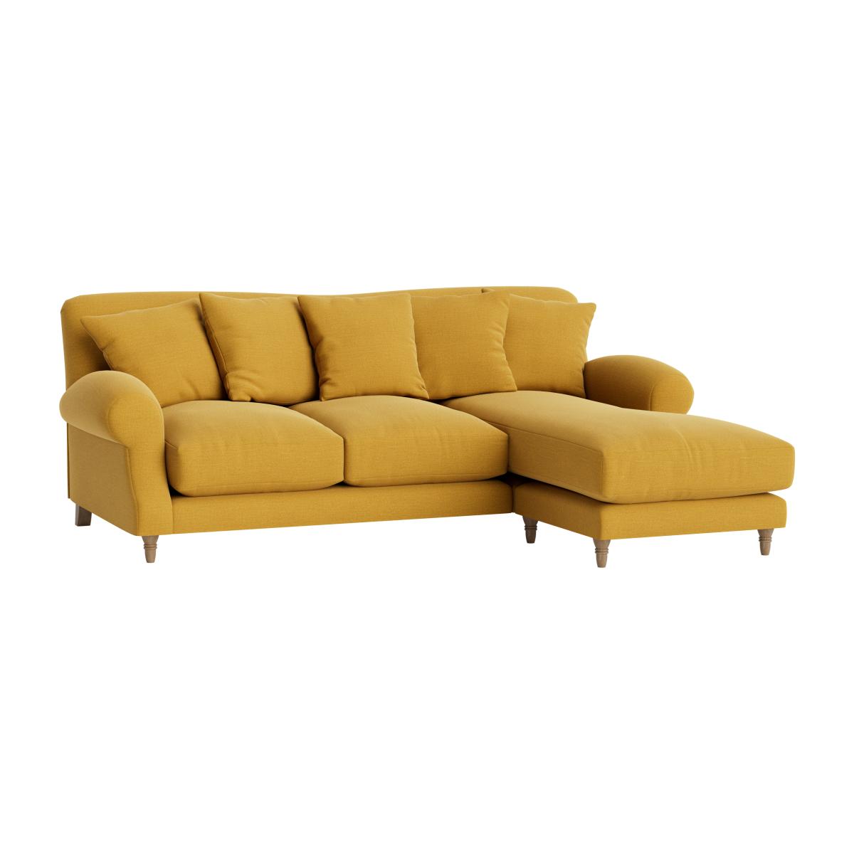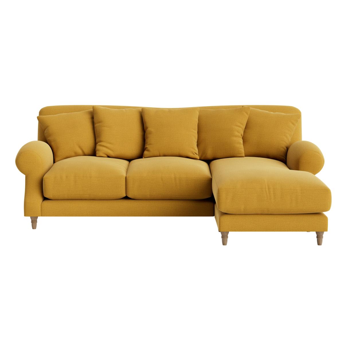 I love the Crumpet Chaise because of its inviting, contemporary design and versatile shape, making it ideal for cosy living spaces or open-plan rooms. It’s perfect in both modern and traditional interiors, especially when you want a statement piece that doesn’t overpower the room. To style it well, consider pairing with textured cushions or throws to add warmth and personality. Since it's a corner sofa, it works beautifully in larger settings, but can also anchor a smaller seating area by pairing with a compact coffee table and minimalist accessories. Its warm yellow tone can be refreshed with neutral or contrasting colour schemes, like navy or charcoal, for a balanced, polished look.