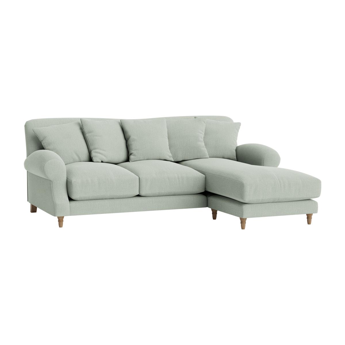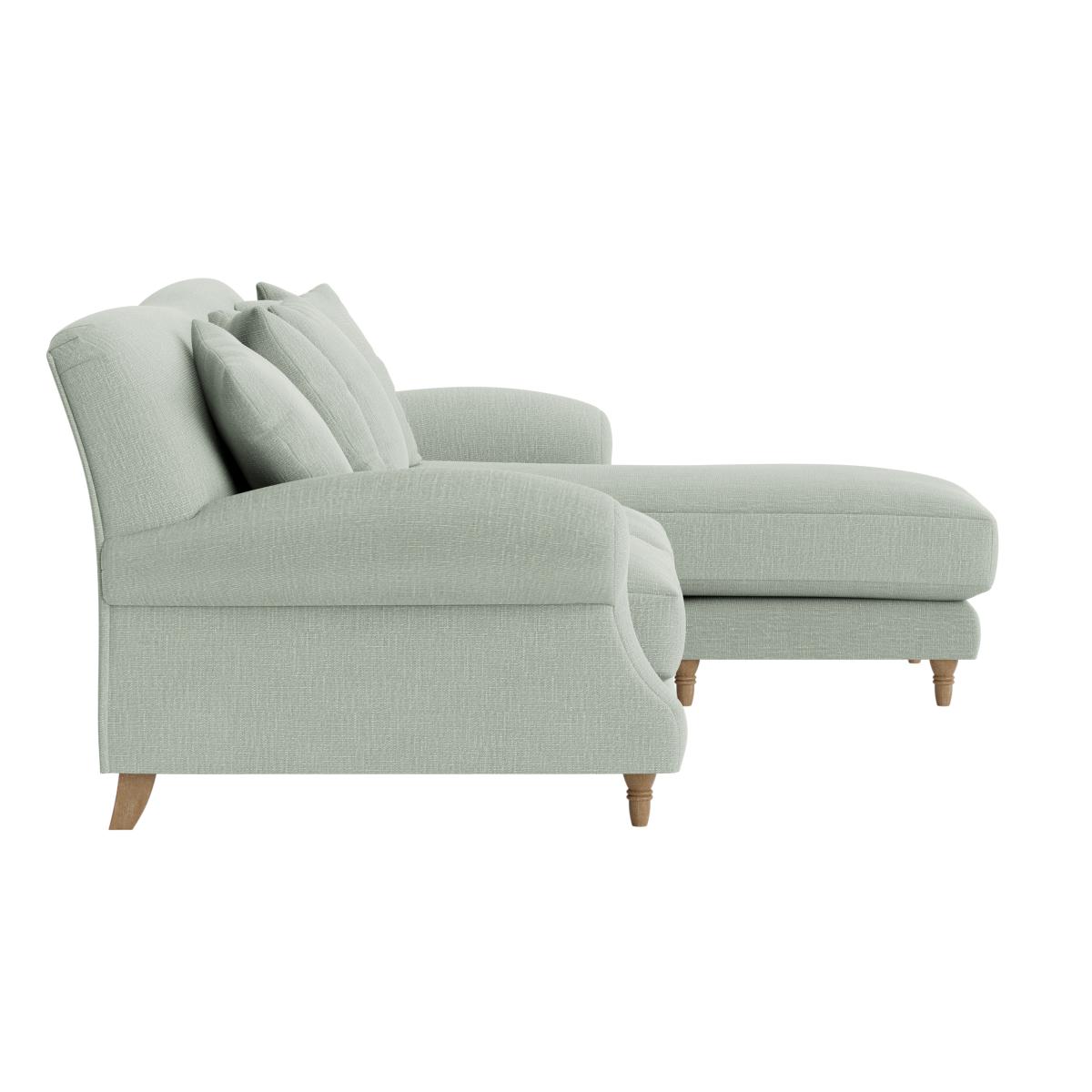 I love this corner sofa for its versatility and understated style. The Crumpet is ideal for cosy, informal living spaces or open-plan rooms where maximum seating is a priority. Its soft pastel hue lends itself well to relaxed, contemporary interiors, but it can also be styled effectively in Scandi and minimalist schemes with neutral palettes. Practical styling tips include adding textured cushions or throws for extra comfort and visual interest, while pairing with a simple, sleek coffee table keeps the space feeling fresh. Its compact chaise makes it a practical choice for smaller rooms or corner areas, and the light colour helps keep the overall look airy and inviting.