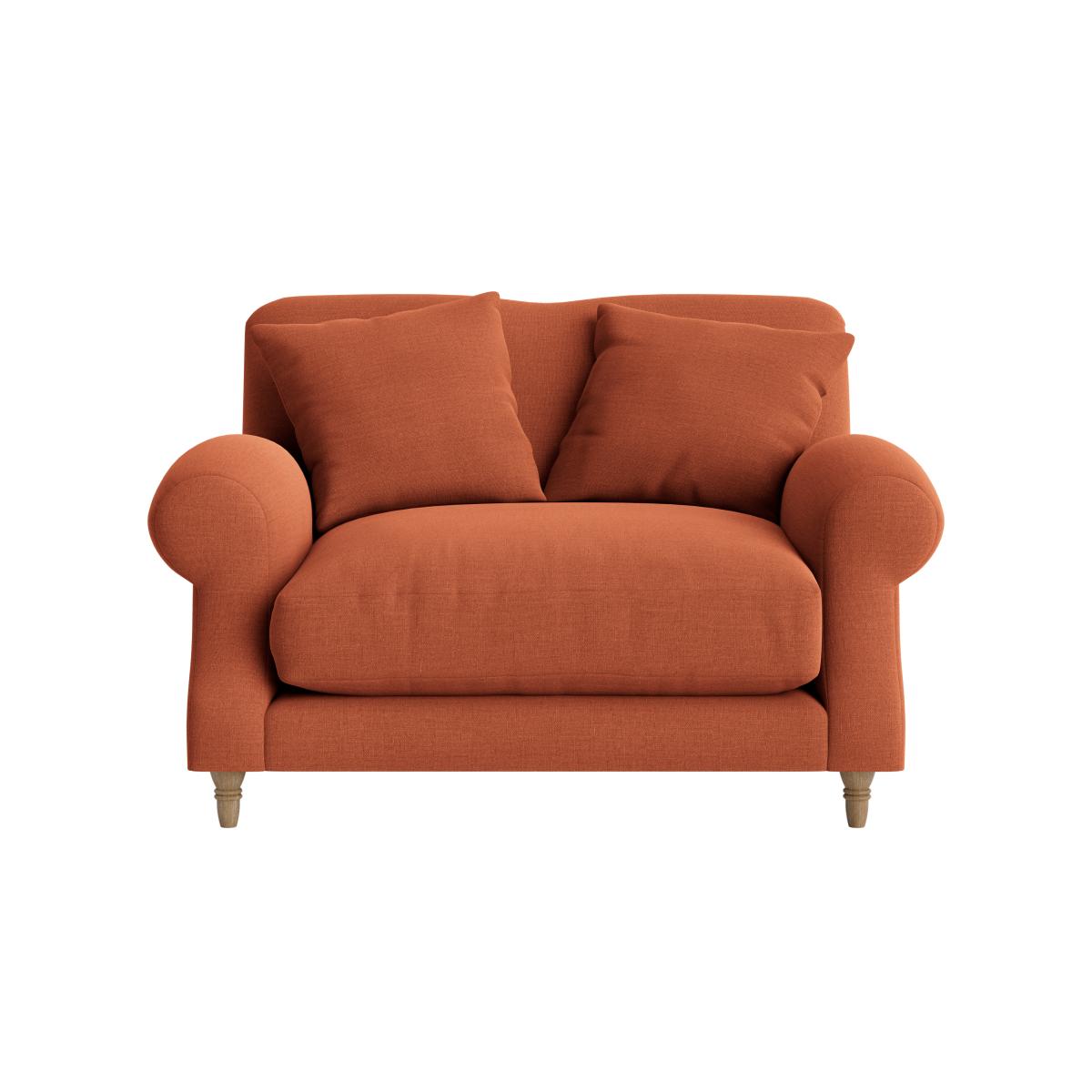 I love the crumpet love seat for its inviting, cosy silhouette and versatile design. Its warm, earthy tone makes it easy to introduce into a variety of interiors, from boho to modern minimalist spaces. It's particularly well-suited to smaller living rooms or as a charming focal point in a corner, thanks to its compact size. Styling tips include pairing it with textured throws and patterned cushions to add visual interest, or anchoring it alongside wooden or brass accents for a pared-back, relaxed look. Its practical design makes it perfect for everyday use, while its approachable colour ensures it complements both neutrals and bolder colour schemes with ease.