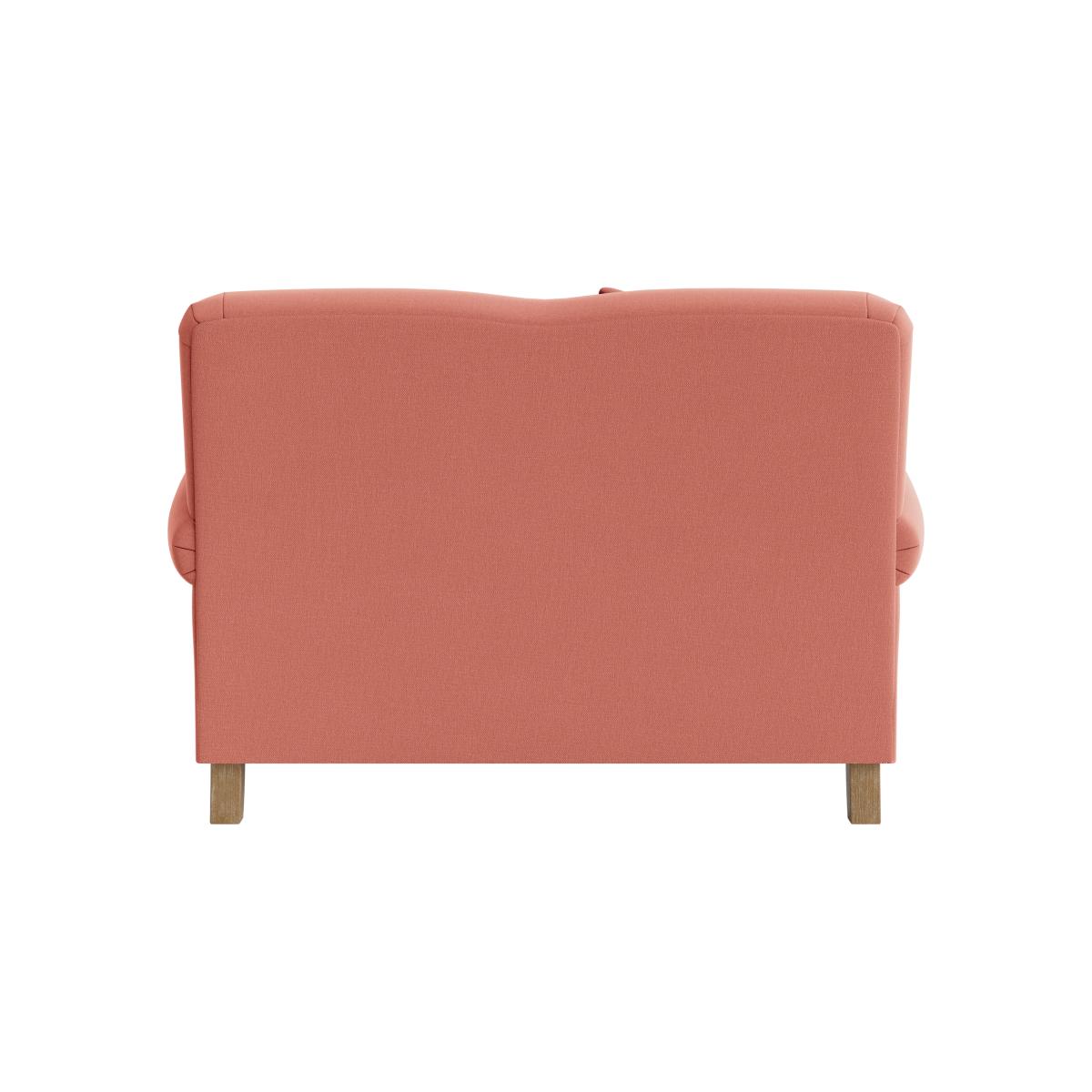 I love this little love seat for its compact yet plush design, making it ideal for cosy corners or spaces where a larger sofa might overwhelm. Its soft pink hue adds warmth and a touch of subtle colour, great for enhancing both modern and traditional interiors. To style it effectively, consider pairing with neutral or earthy tones to keep the look timeless, or add patterned cushions for visual interest. It works well in relaxed living rooms, reading nooks, or even bedroom seating areas. Practical tips include layering with textured throws and choosing low-profile coffee tables to keep the space feeling open and inviting. Overall, it’s a versatile piece that combines comfort with style effortlessly.