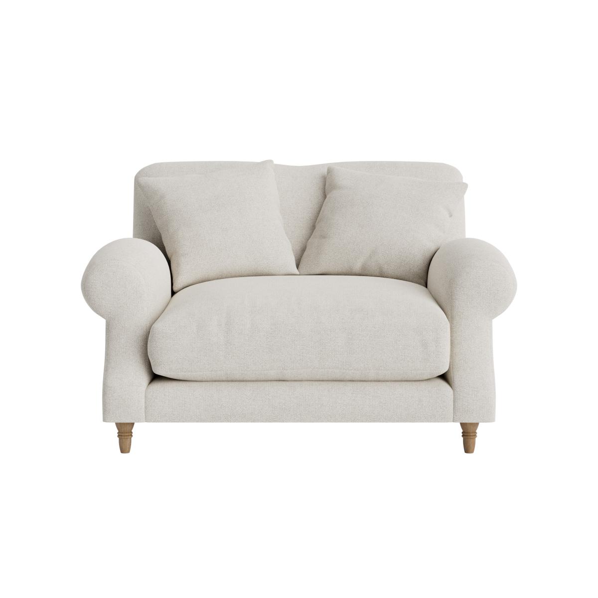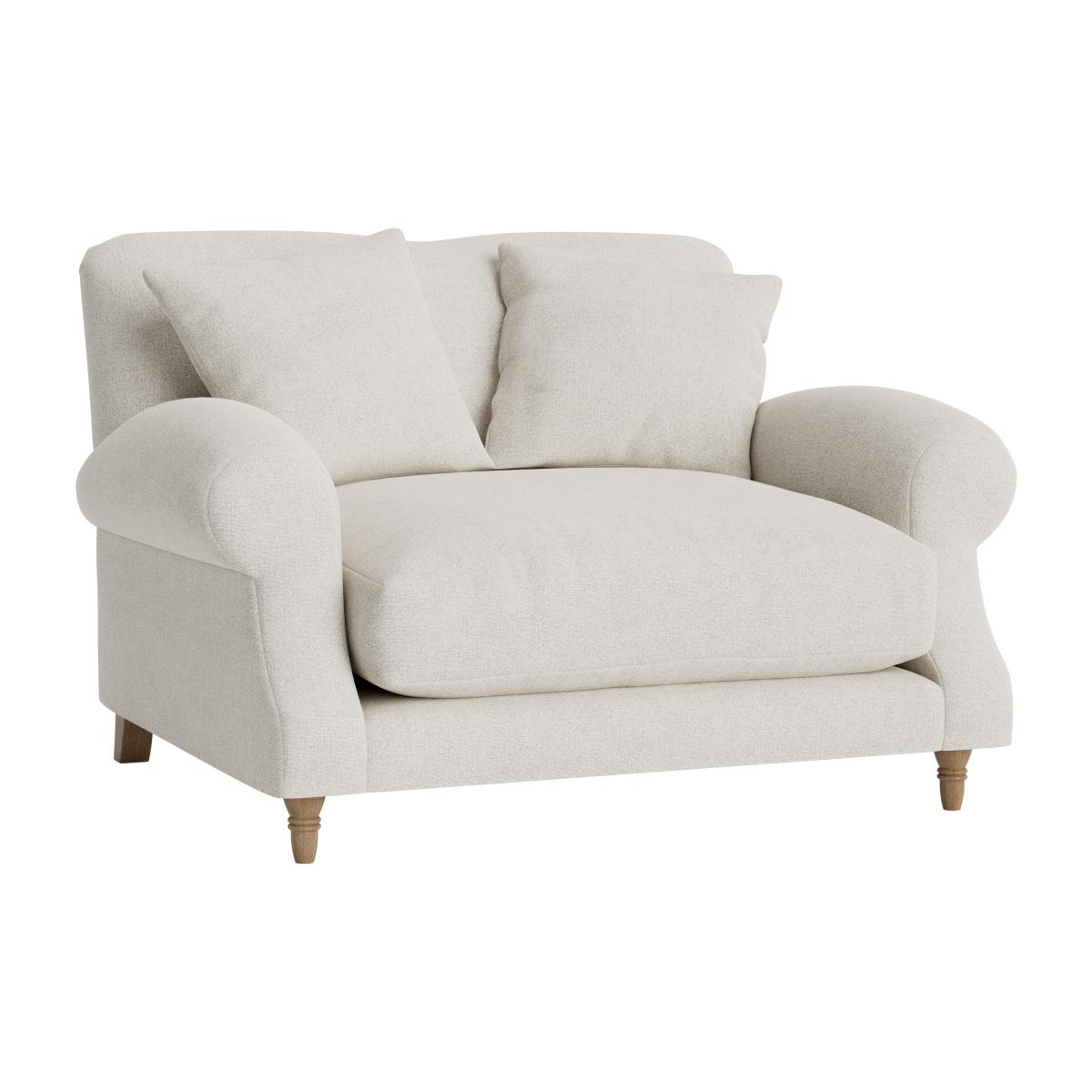 I love the Crumpet because of its timeless and versatile design, making it a great addition to both traditional and contemporary interiors. Its cosy proportions and soft, neutral linen-like fabric create an inviting focal point, perfect for smaller sitting areas or as a charming snuggle spot in a larger room. Styling tips include pairing it with textured cushions and a throw for added comfort, or contrasting it with bold, colourful accents to add visual interest. It works well in cosy living rooms, cottage-inspired schemes, or even relaxed bedrooms, and its understated elegance makes it easy to incorporate into various colour palettes and decor styles.