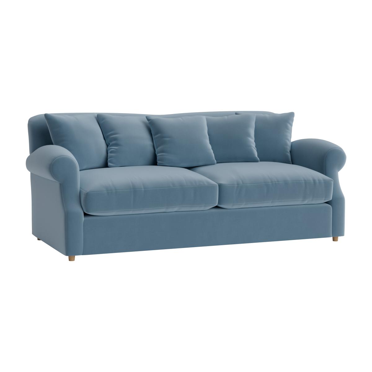 I love this sofa bed for its versatile charm and understated elegance, making it a practical yet stylish addition to various interiors. It's particularly well-suited for cosy living rooms, guest rooms, or small spaces where functionality is key. The soft blue hue adds a gentle pop of colour without overpowering a room, and the classic rolled arms lend a traditional touch that pairs well with both modern and vintage-inspired decor. For styling tips, consider layering with textured cushions and a cosy throw to soften the look and enhance comfort. Placed against a neutral backdrop or paired with wooden accents, it creates a welcoming and adaptable setting that balances functionality with style.