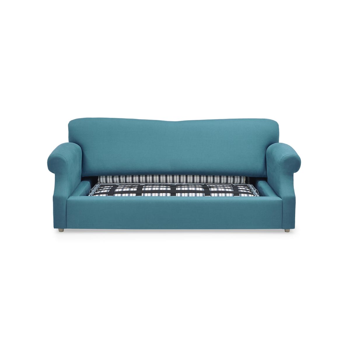 The Crumpet sofa bed is a real winner for adding versatile style to both classic and contemporary interiors. I love its cosy, generous proportions paired with the relaxed, rounded armrest shape that makes it inviting in any living space. It works really well in smaller rooms or multi-functional areas, such as a guest room or open-plan living-dining areas, where accommodating overnight visitors is important. To style it well, consider pairing it with layered textures like crisp linen or soft throws, and complementing with cushions in contrasting hues or patterns for added interest. Its rich colour makes it a statement piece, so keep surrounding decor simple with neutral walls or subtle accessories to allow it to truly stand out.