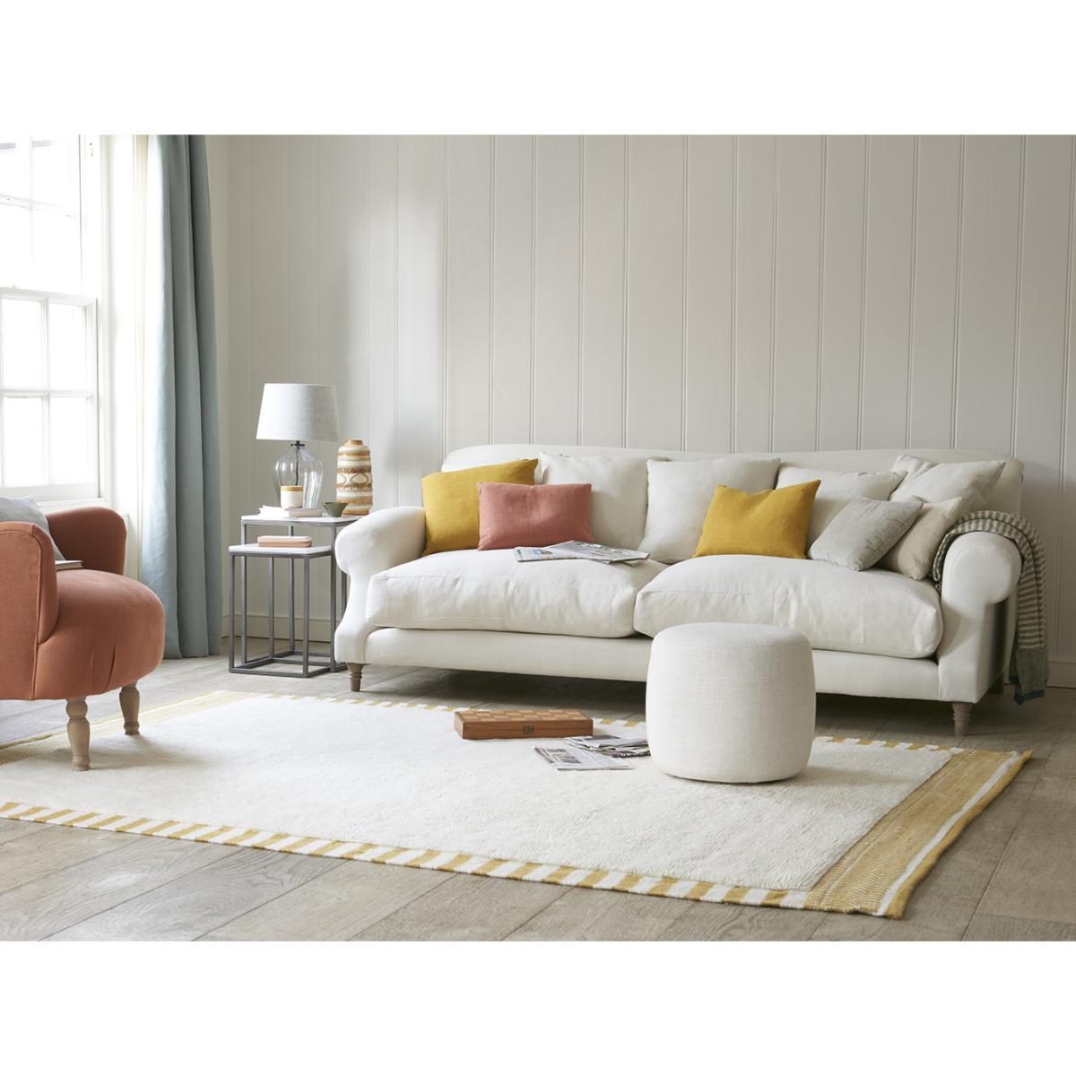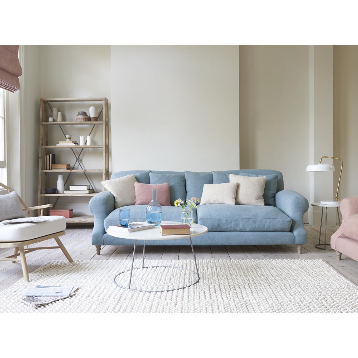 I really like the Crumpet, it’s a versatile piece that works well in both contemporary and traditional interiors thanks to its simple yet inviting design. The soft, rounded arms and comfortable cushions make it perfect for a family living room or a cozy sitting area. Styling tips include complementing it with textured throws and cushions in complementary colours or patterns to add visual interest. In terms of practical tips, pairing it with a striking rug underneath will anchor the space, while keeping accessories minimal will allow the sofa to remain the focal point. Its neutral tone also makes it easy to update with different décor themes over time.