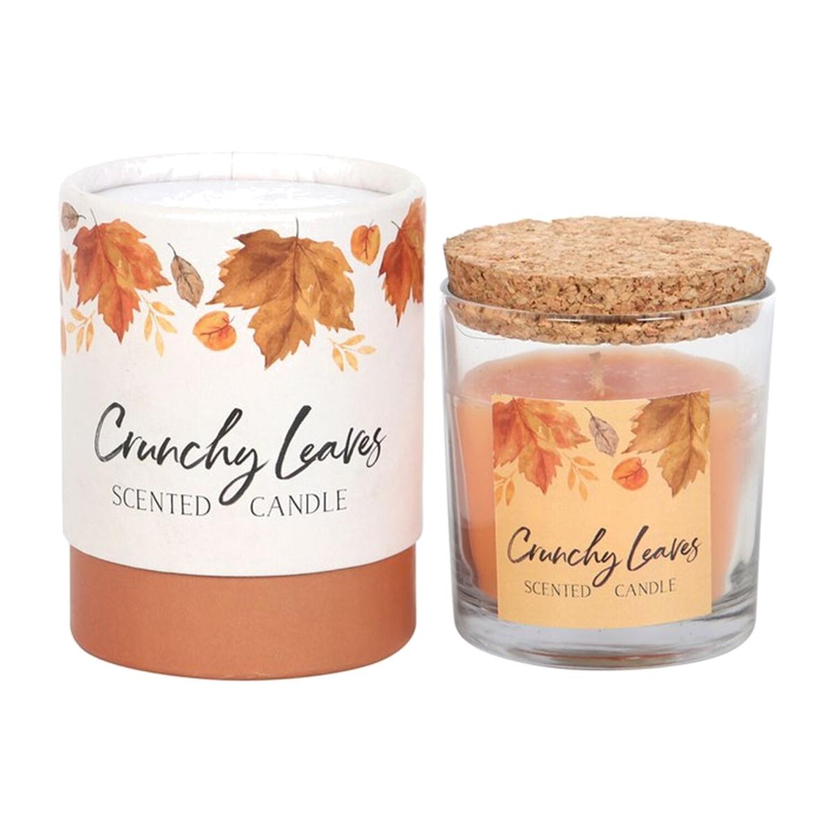 Cosy up on a chilly autumn day and enhance your home with this Crunchy Leaves fragranced candle. Glass holder with cork lid and beautifully presented in matching cardboard tube packaging. Vegan paraffin wax. Approximately 25 hour burn time.