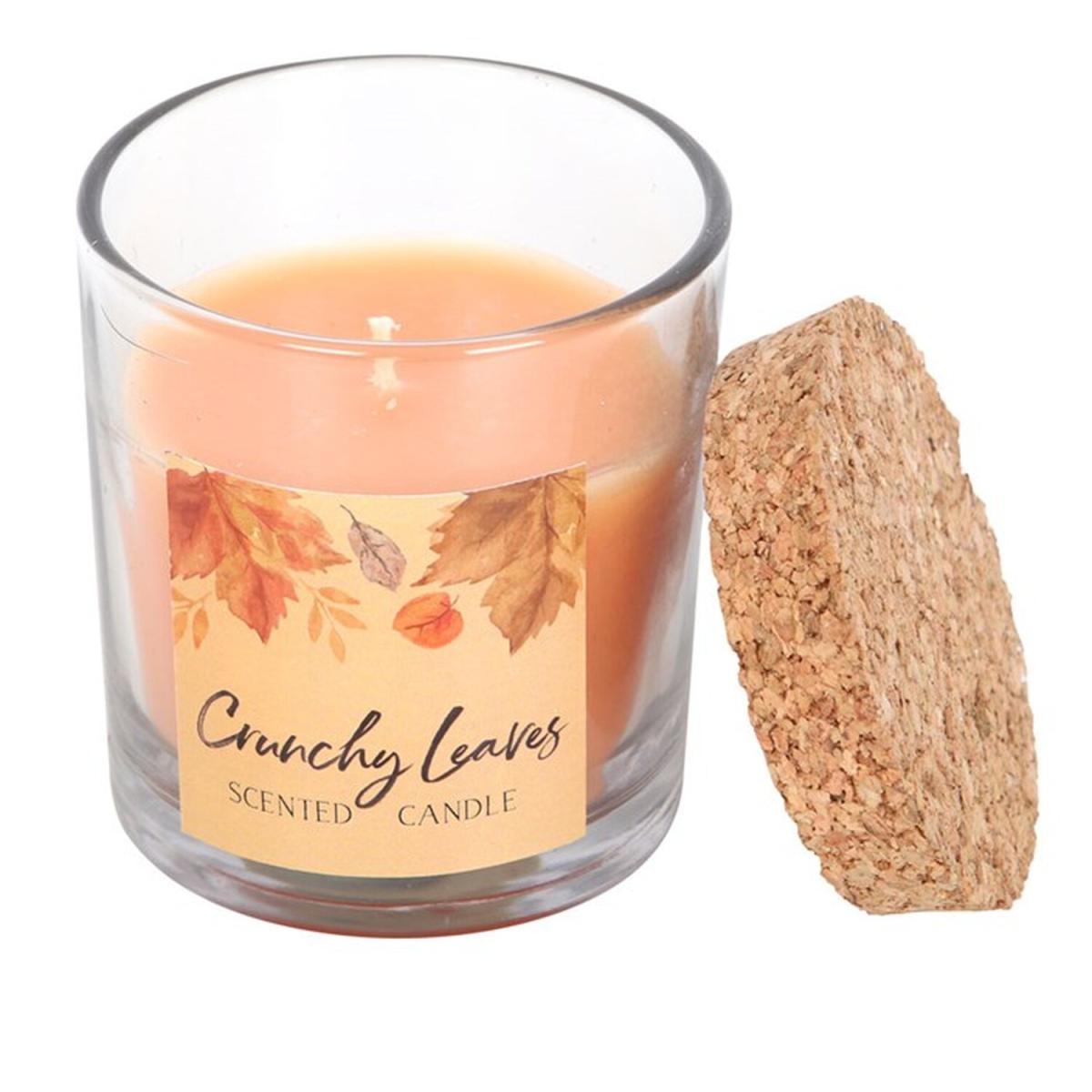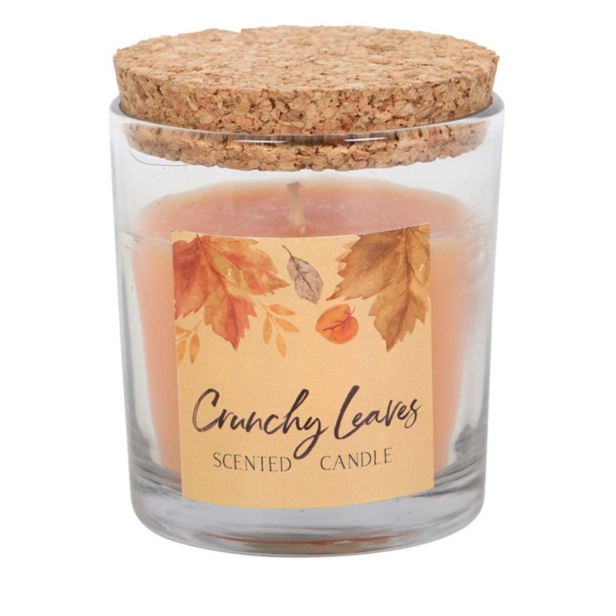 A crunchy leaves scented candle perfect for the autumn season. Glass holder with cork lid and beautifully presented in matching cardboard tube packaging. Vegan paraffin wax. Approximately 25-hour burn time.