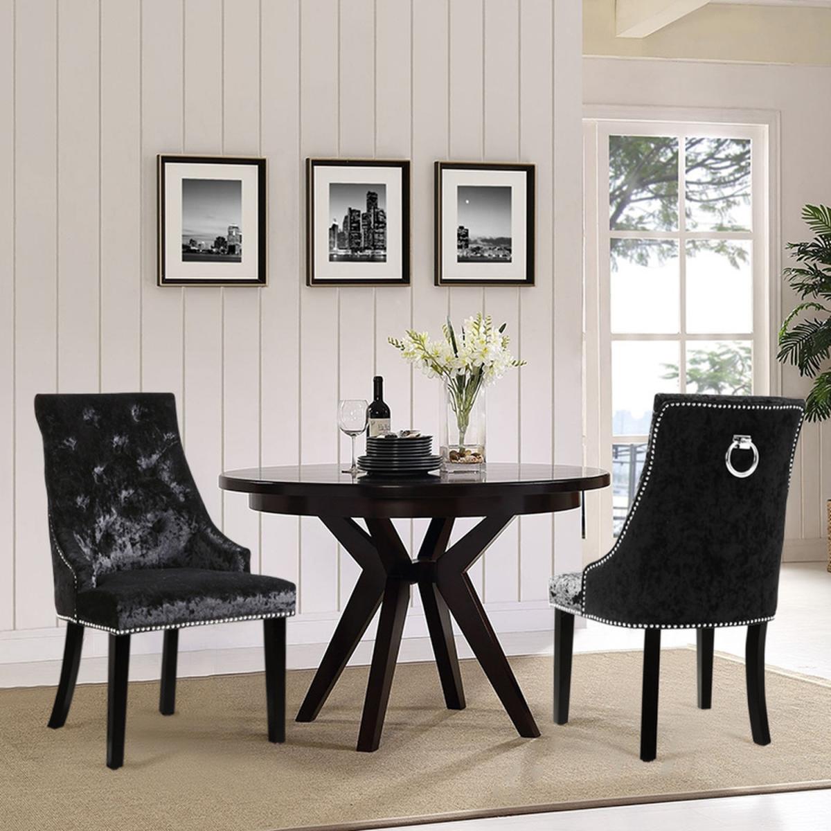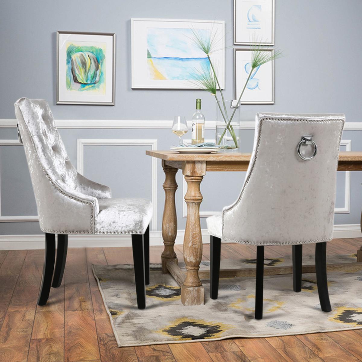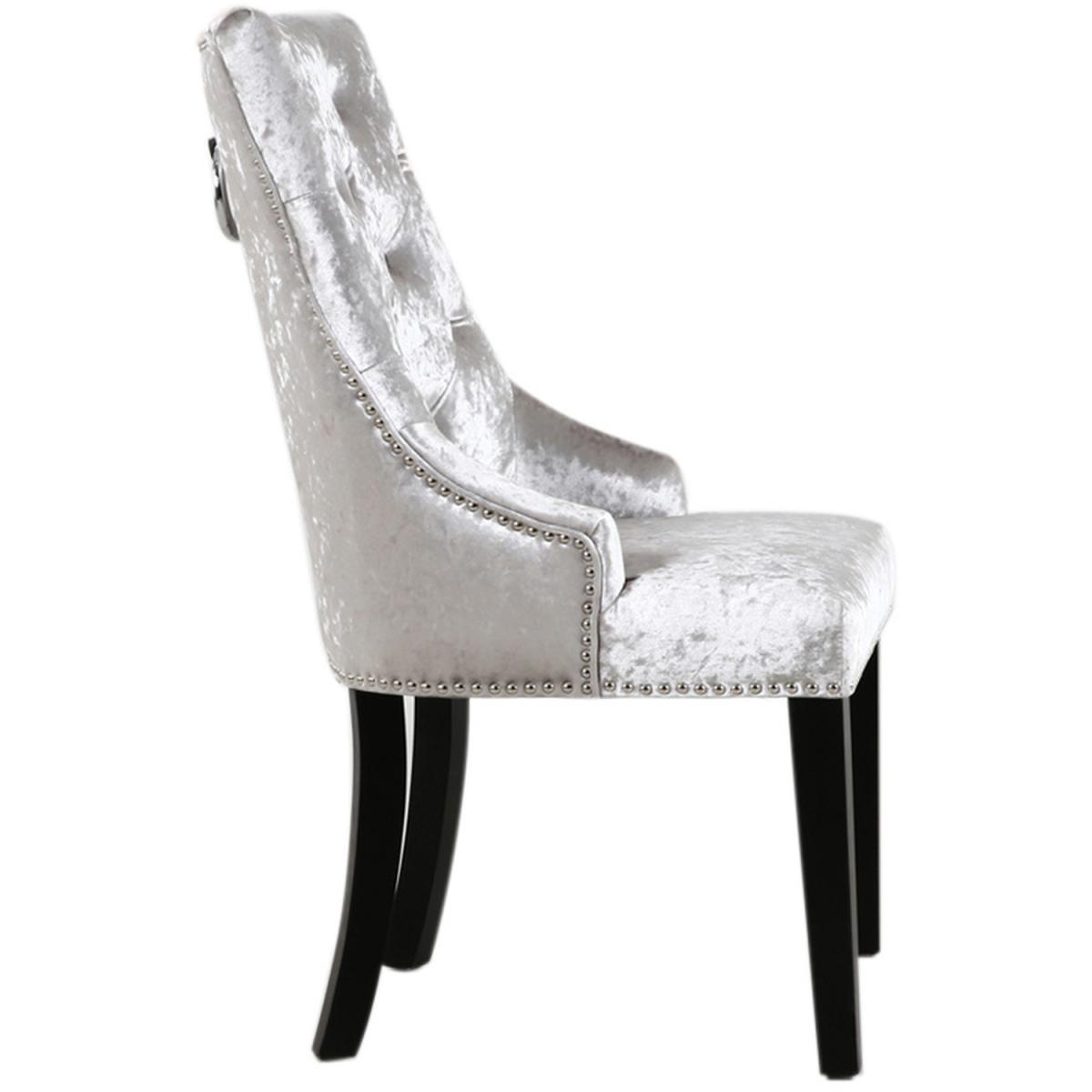 Offering an irresistible combination of design and value, this set of chairs feature a high wingback with button detailing, metal nail and Lion knocker on its backside for decoration. Bringing a twist of modern gothic, this luxuriously upholstered and studded chair will have you sitting in style for hours. This was integral that this classical design trickled into a comfortable, modern aesthetic.