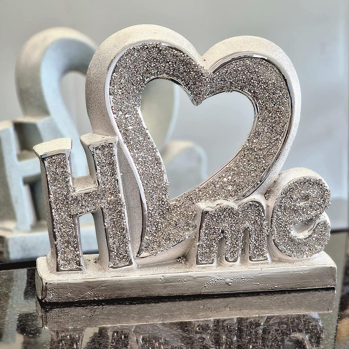 Crushed Diamond Home Sign Letters With Heart Jewel - Silver