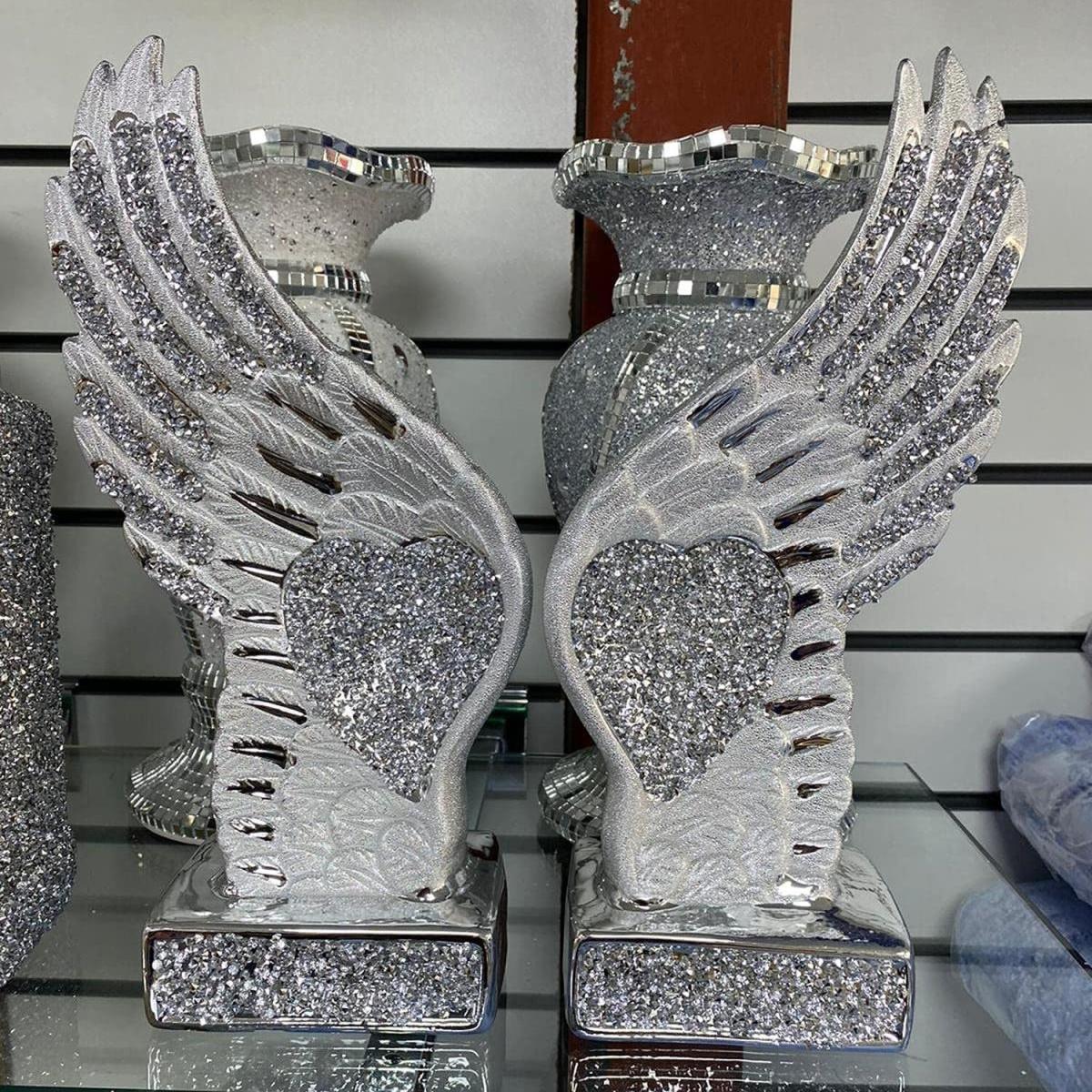 Crushed Diamond Sparkly Pair Wings Angel Ornament - Silver