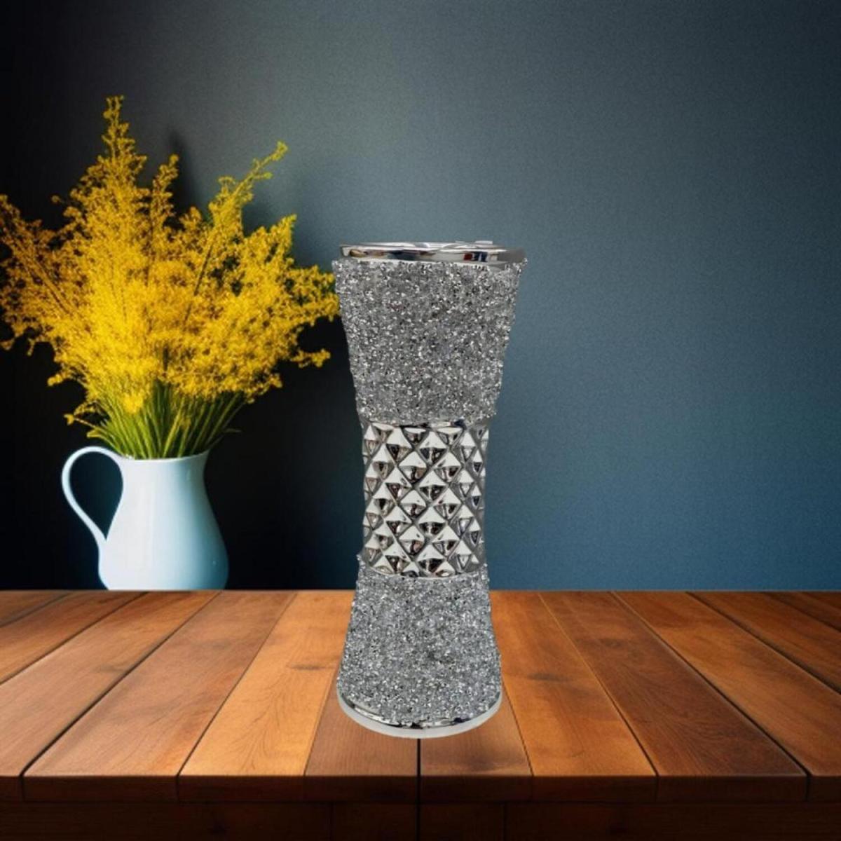 Crushed Diamond Stunning Silver Crystal Silver Ceramic Vase Sparkly - Silver / 25cm