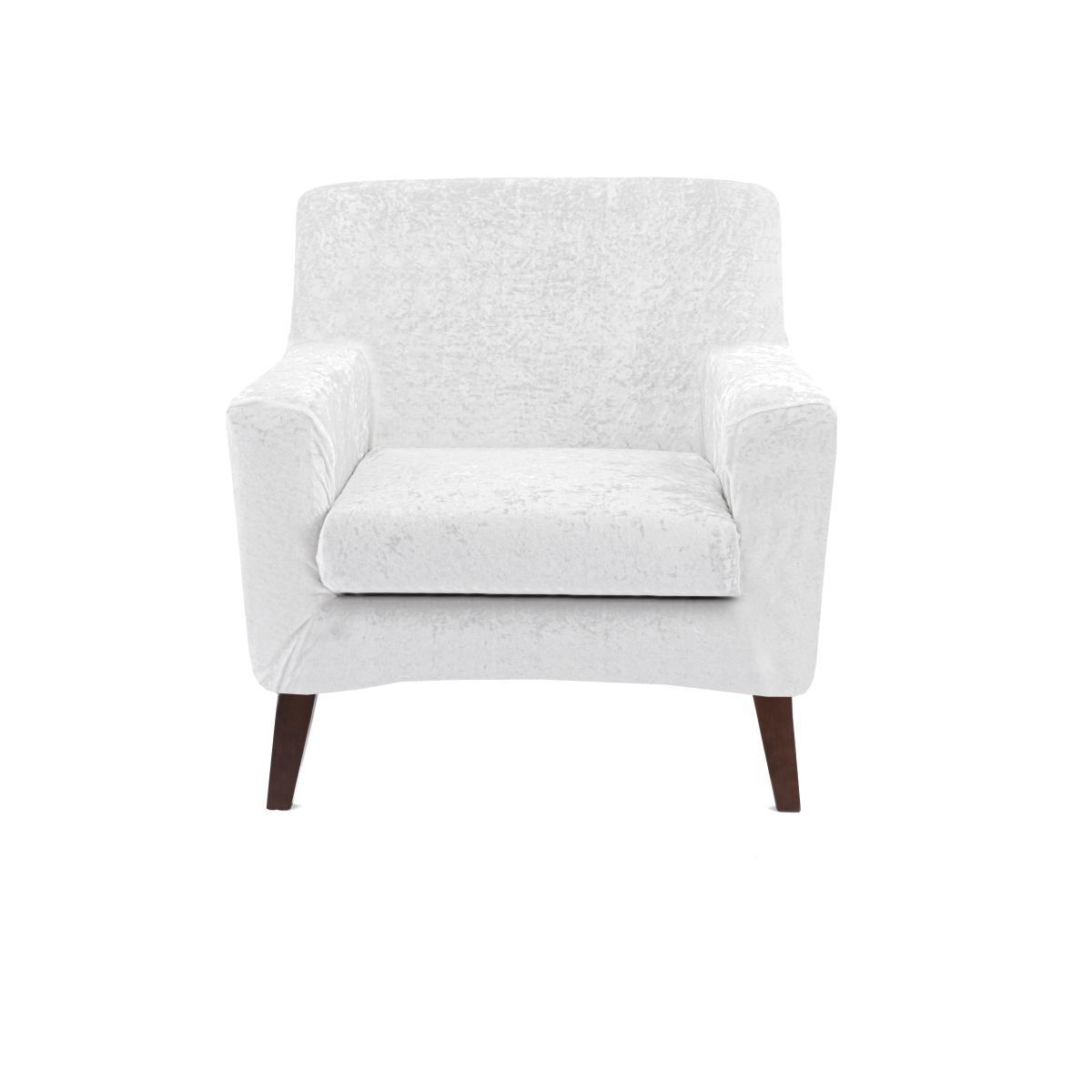 Crushed Velvet Armchair Cover White