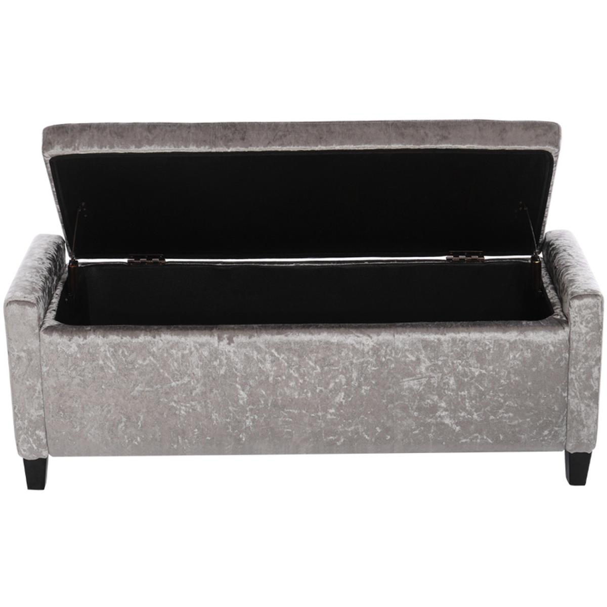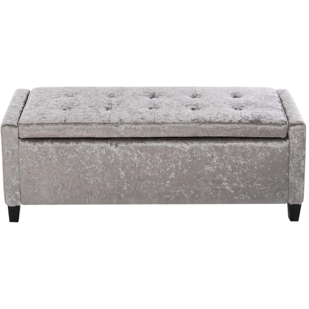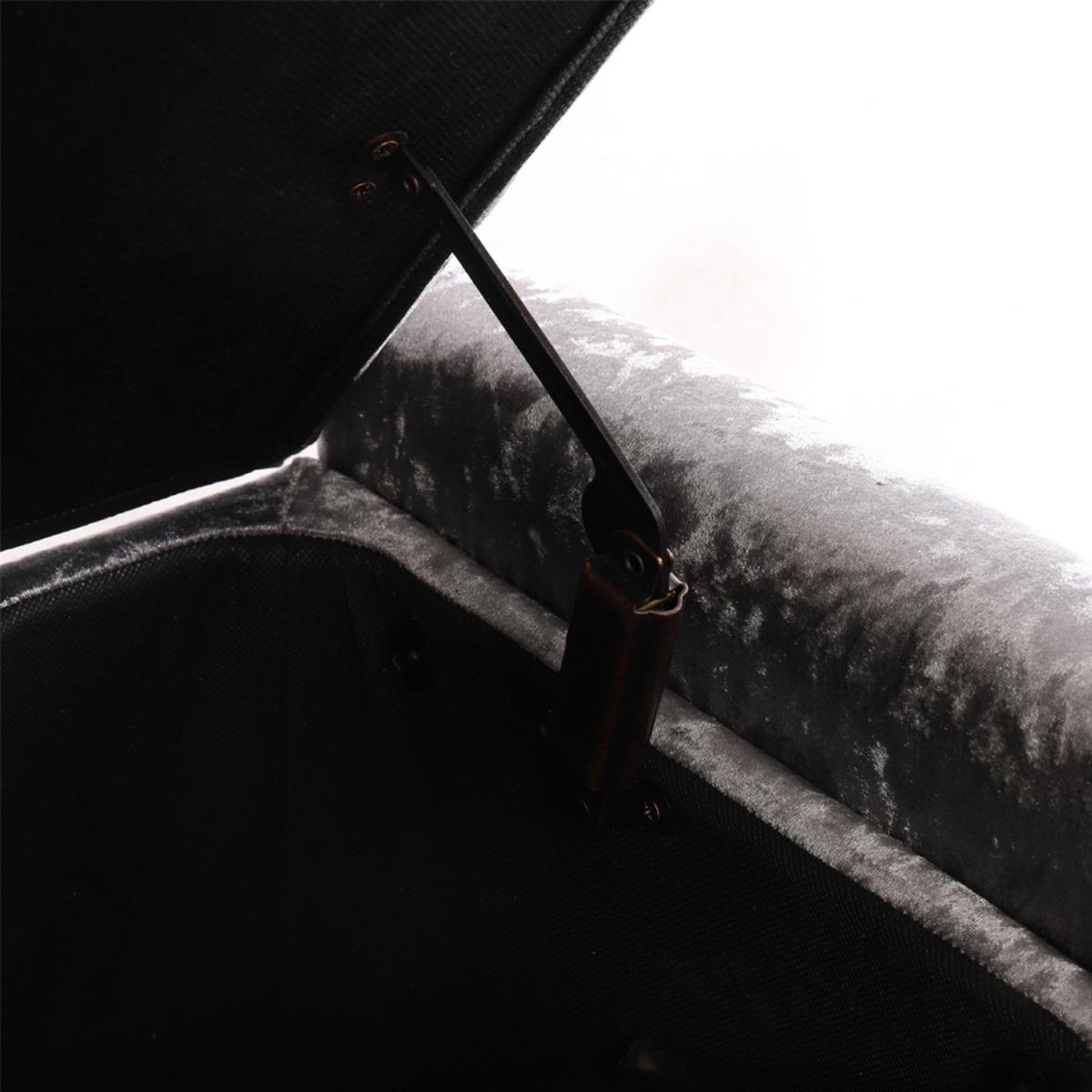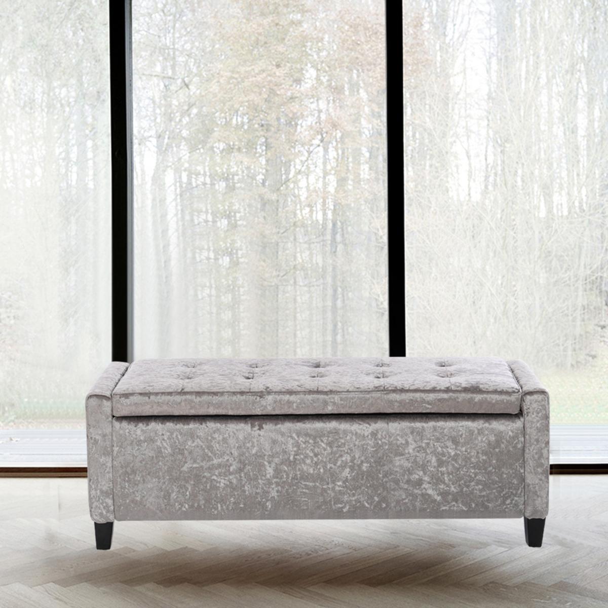 The bench ottoman is upholstered in velvet, features traditional buttoning detailing to the back rest and seat with a tall stance. You can use it to store anything discreetly, from towels and bedding to clothes and accessories. Hinges keep the lid in place once opened, making it easy for you to access and store your items, provides room to keep the area discreetly clean and tidy. Four rubberwood feet to provide extra stability, delicately carved wooden legs give the storage box a luxurious and sophisticated touch. This stool is long enough to comfortably sit 3 people. Flat packing, easy assembly required. Ideal for entryway, living room, family room, basement or bedroom.