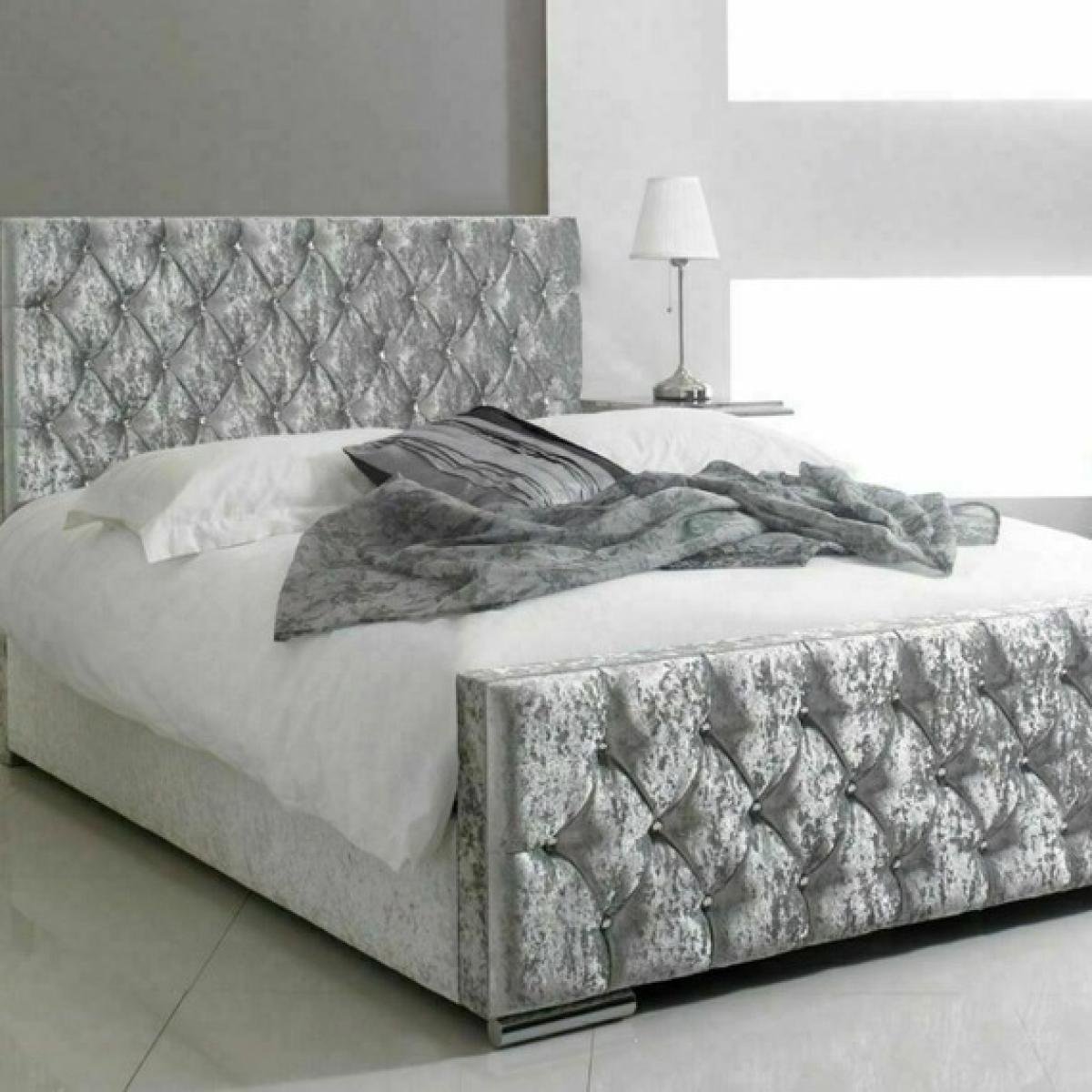 Crushed Velvet Chesterfield bed frame SILVER DOUBLE - Silver