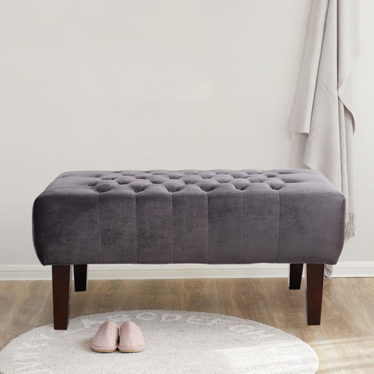 Grace your home interior with the timeless beauty of the Chesterfield Bench. Featuring an upholstery that breathes the classic chic of Chesterfield, beautifully turned legs, this granite grey satin ottoman elevates your classic decor. The outstanding Chesterfield bench will surely add a stylish as well as a luxurious touch to your home.