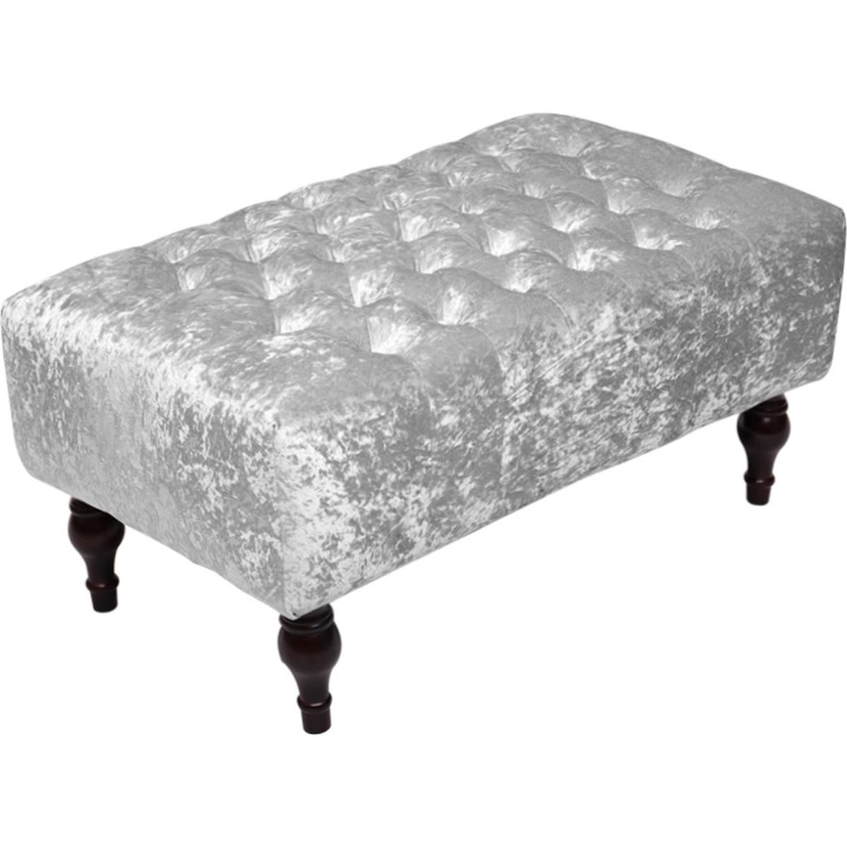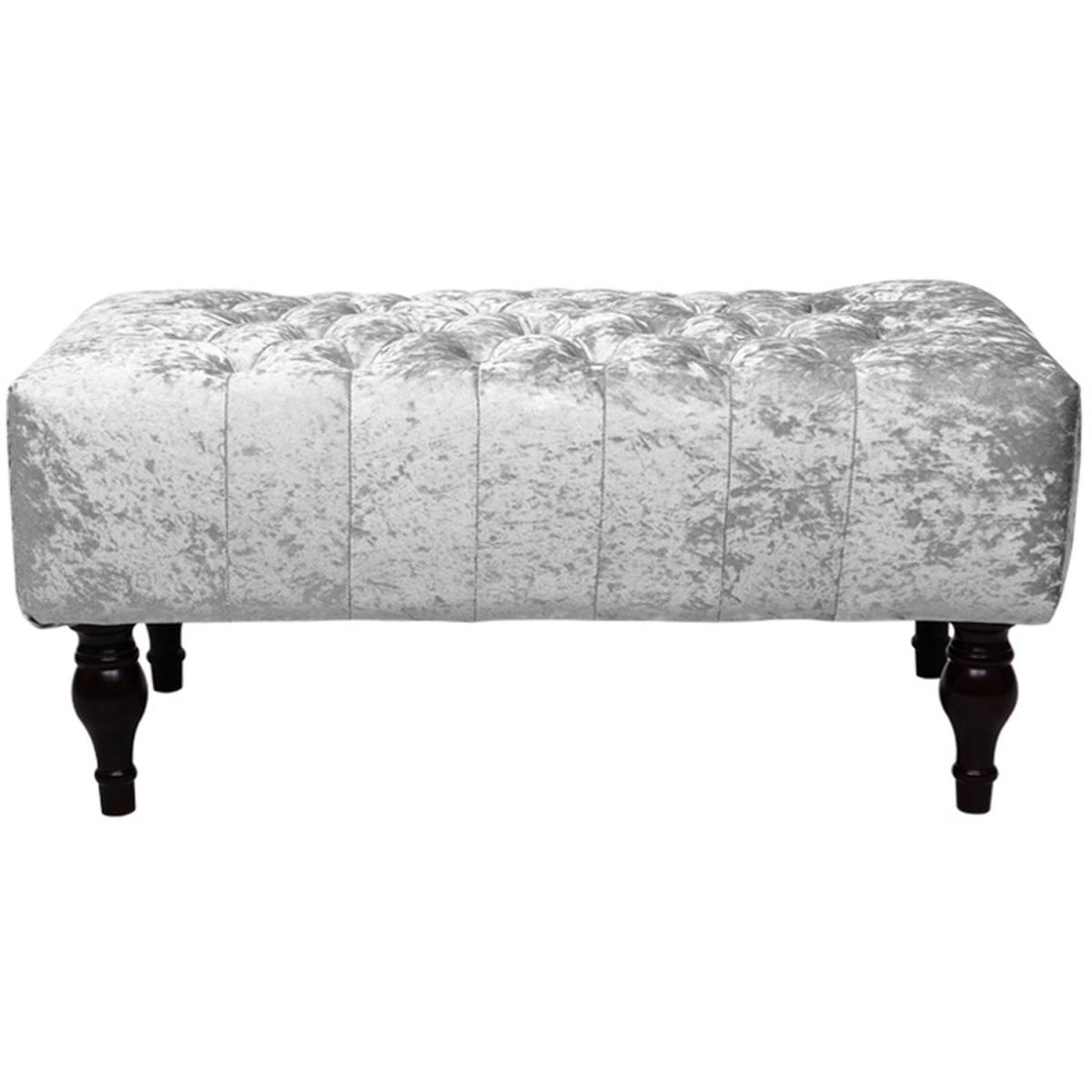 Crushed Velvet Chesterfield Buttoned Footstool Bench - Grey