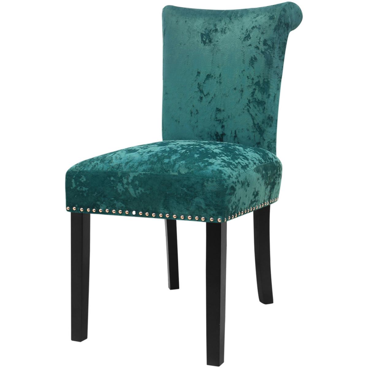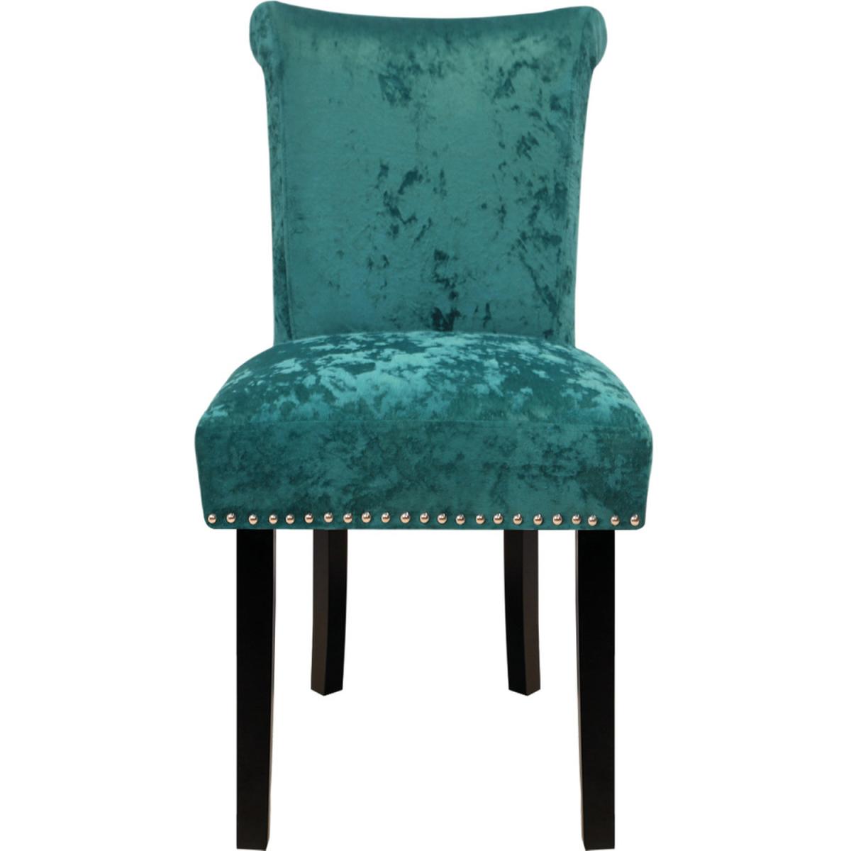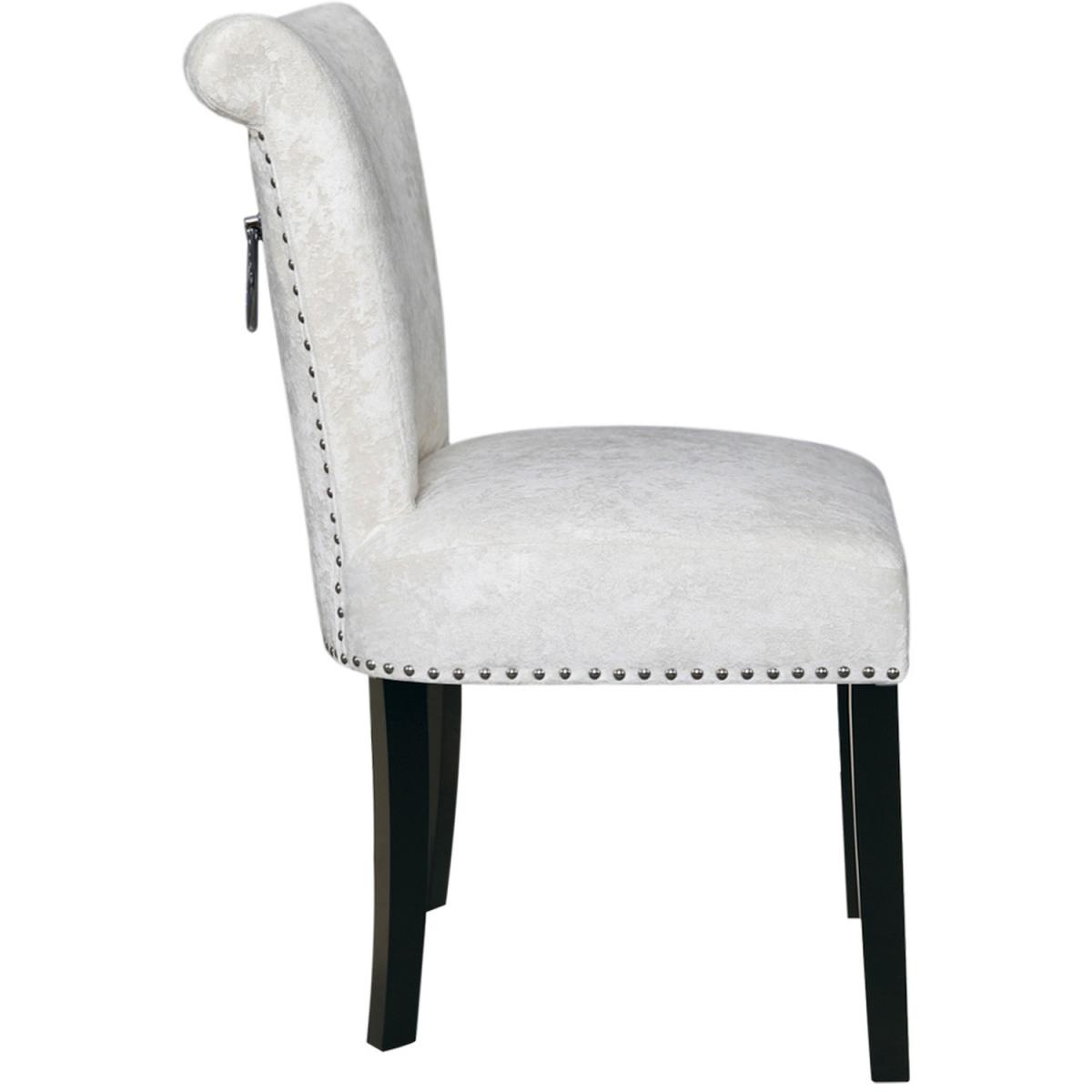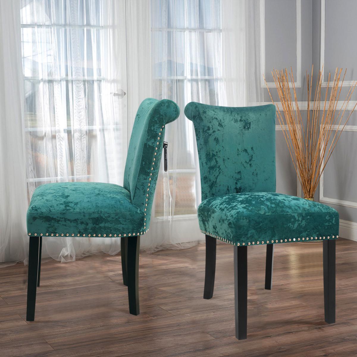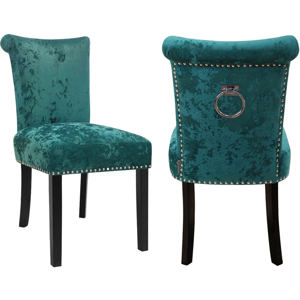 Bring the charm of fashion to your dining room with this chair set in a unique shape. It features a high and back-rolled-edge wingback with button detailing, metal nail and Lion knocker on its backside for decoration. Bringing a twist of modern gothic, this luxuriously upholstered and studded chair will have you sitting in style for hours. This was integral that this classical design trickled into a comfortable, modern aesthetic. Easy to Assemble - Simply fix the legs to the chair in a few easy steps. (Set of 2)