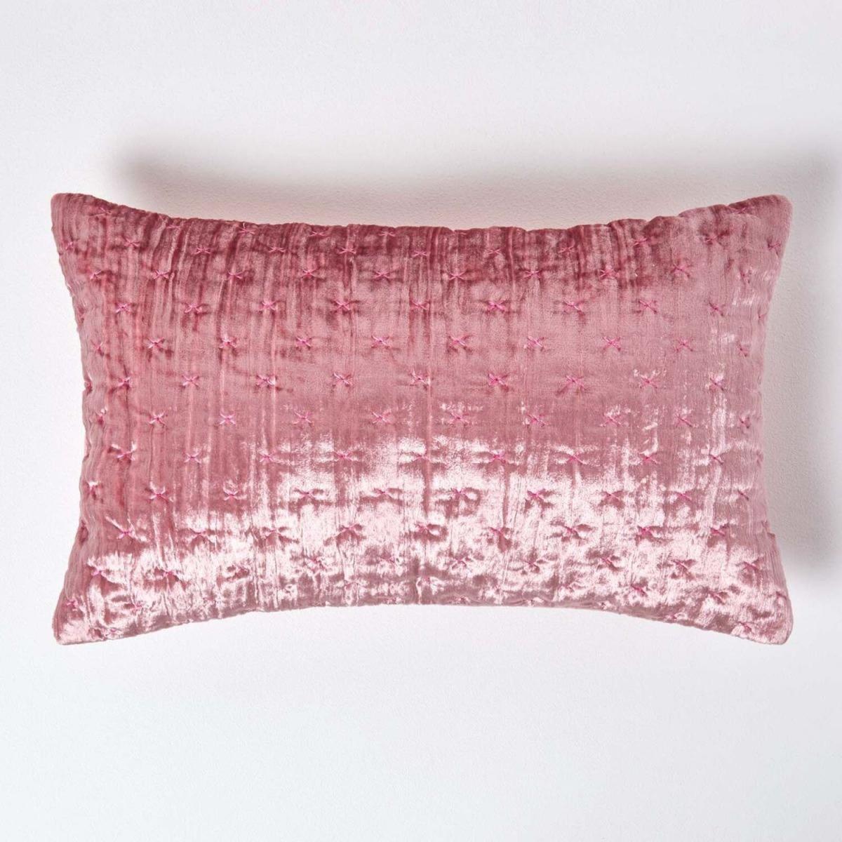 On-trend crushed velvet cushion cover with hand stitched embroidered crosses for added texture. Add a burst of colour to your living room or bedroom, this vintage style cushion cover is woven from super soft crushed velvet and features a plain reverse, making it easy to style. Choose from three sizes including 30 x 50 cm, 40 x 40 cm or 55 x 55 cm. Perfect for layering up on your sofa and bed, or use alone on an armchair for added comfort. In off-white, this velvet cushion cover will complement every interiors style, and works well when paired with the midnight blue or blush pink colour.p To create a cushion that feels comfortable and supportive, pair with one of Homescapes cushion inserts (sold separately) available in a choice of natural or synthetic fillings. The cover has a zip closure on the reverse side making inserting and removing your cushion pad quick and easy. Machine washable at 30 degrees on a gentle cycle, do not iron. Pack includes one cushion cover only.p