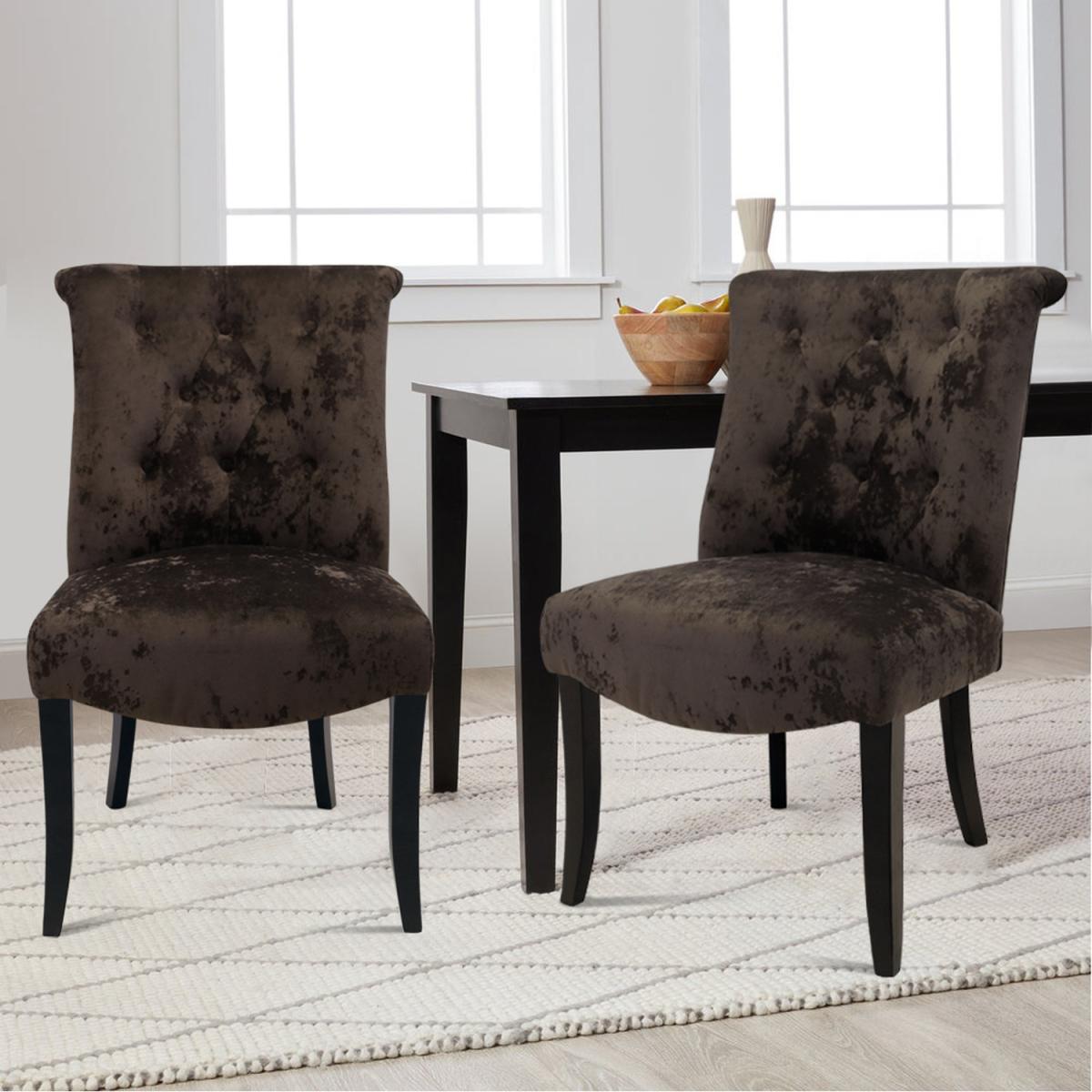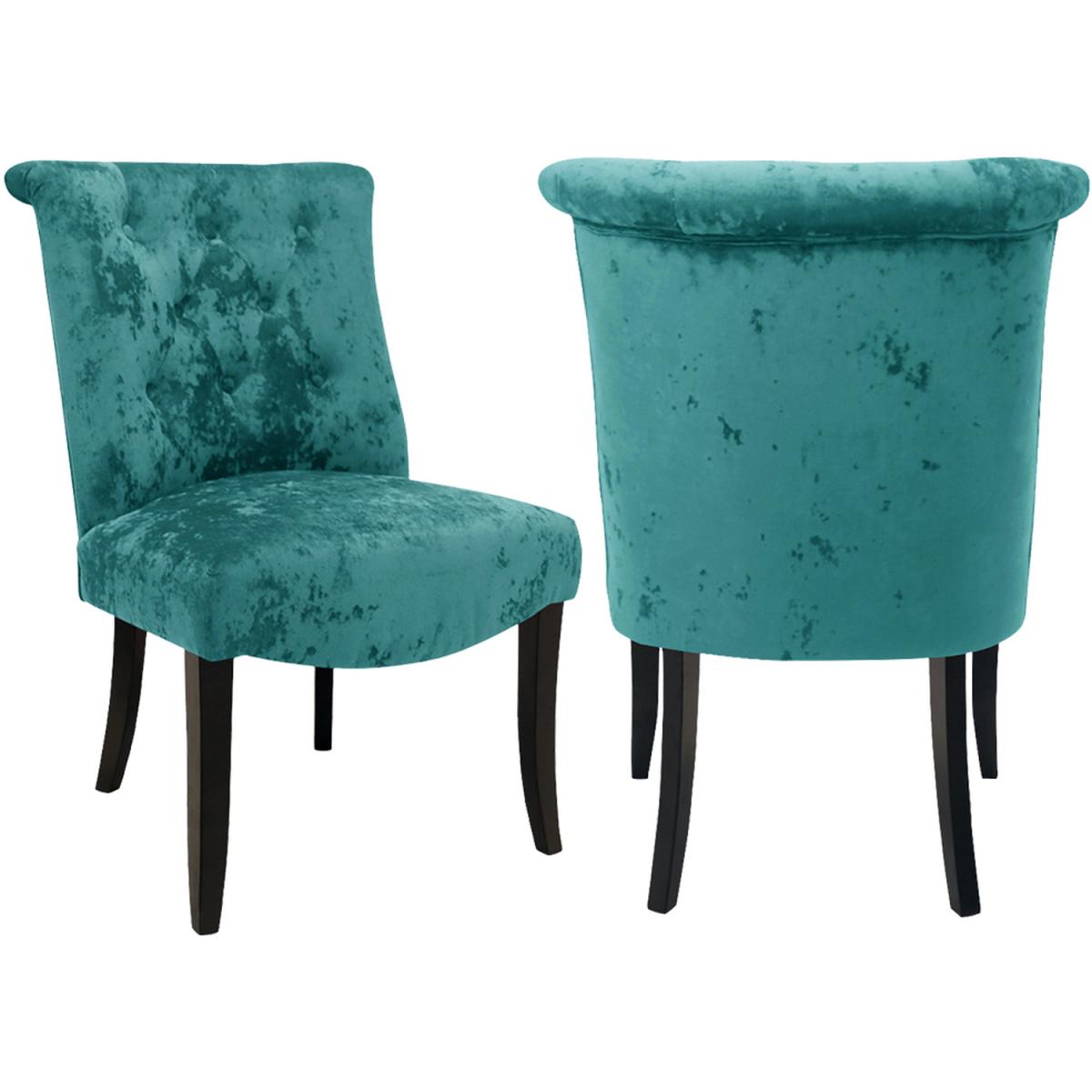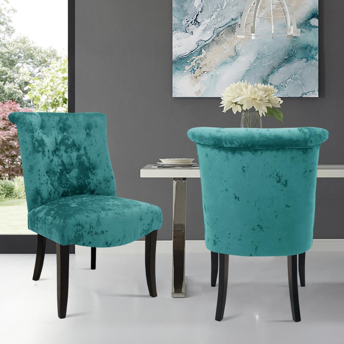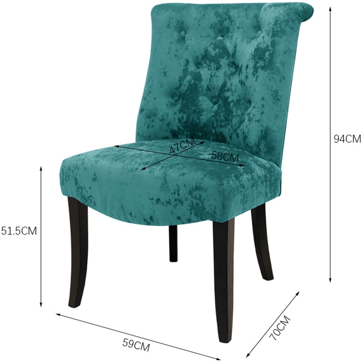 Offering an irresistible combination of design and value, this set of chair S features a curved wingback with button detailing for decoration and high quality crushed velvet upholstery. The padded seat base is filled with foam to guarantee everyone's comfort. These chairs may be a great point when their friends and family come for dinner. These chairs are a beautiful addition to your dining room. Easy to Assemble - Simply fix the legs to the chair in a few easy steps.