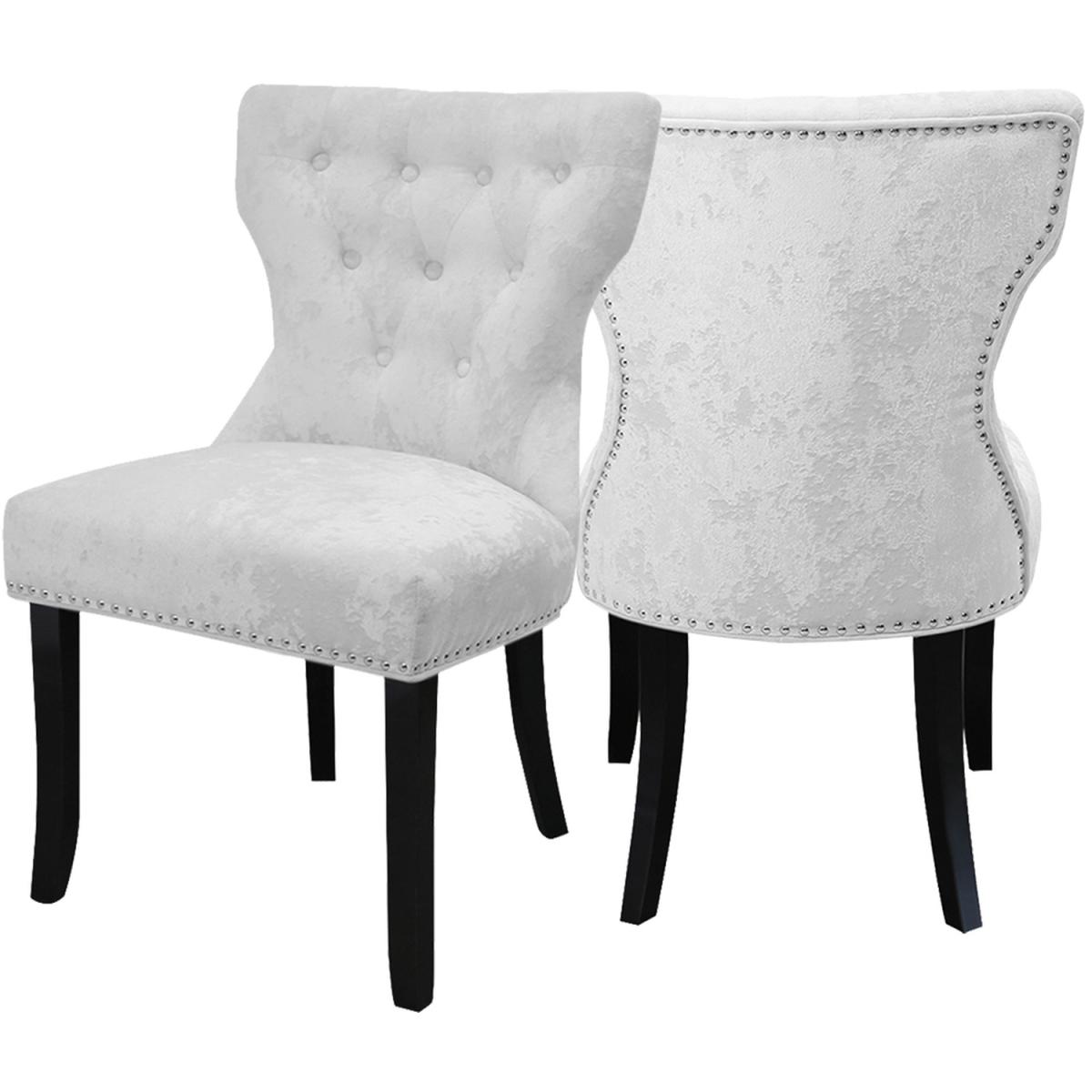 Crushed Velvet Dining Room Chairs Set - White