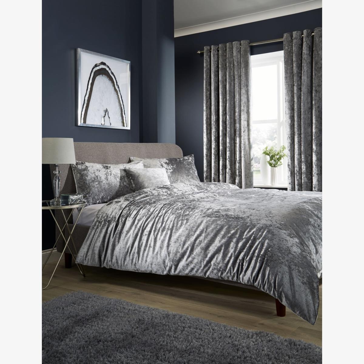 Indulge in pure luxury with the Crushed Velvet Duvet Set. Designed to bring a touch of glamour and sophistication to your bedroom, this bedding set features sumptuously soft crushed velvet, creating a stylish and elegant look while providing ultimate comfort. Crafted for both style and relaxation, its the perfect choice for those who love a plush, opulent sleep space. Available in a range of colours and sizes to suit any bedroom. This duvet set is machine washable to for easy cleaning and high quality material provides longevity. You won't be disappointed with this duvet set!