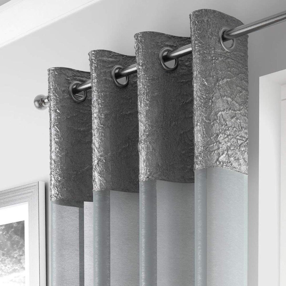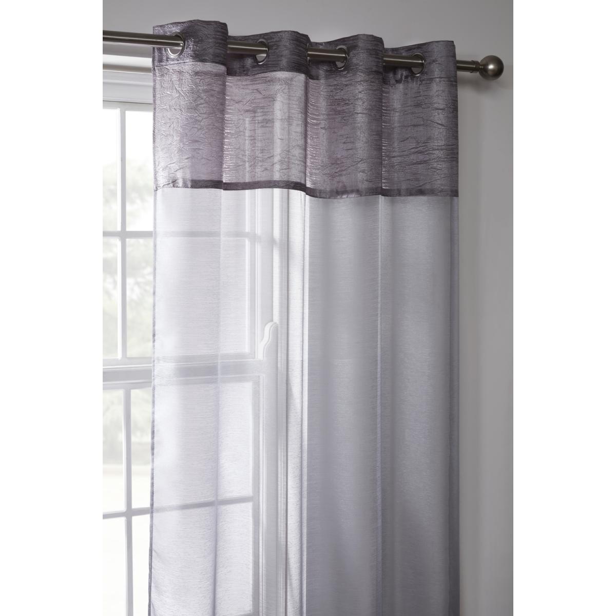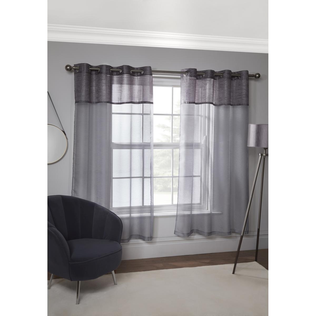 Want more privacy but worried about blocking out the light There's no need to make compromises with the Emma Barclay eyelet voile curtain panel. Made from practical polyester, this sheer curtain will give you privacy, whilst still letting light into the room. A stylish ring top header with metallic detailing makes it easy to attach your voile panel to your curtain pole. Available in a range of colours, this panel also features a silk-effect crushed taffeta border. This adds a touch of elegance to your dcor, with a subtle sheen that's sure to catch the light on sunny days.