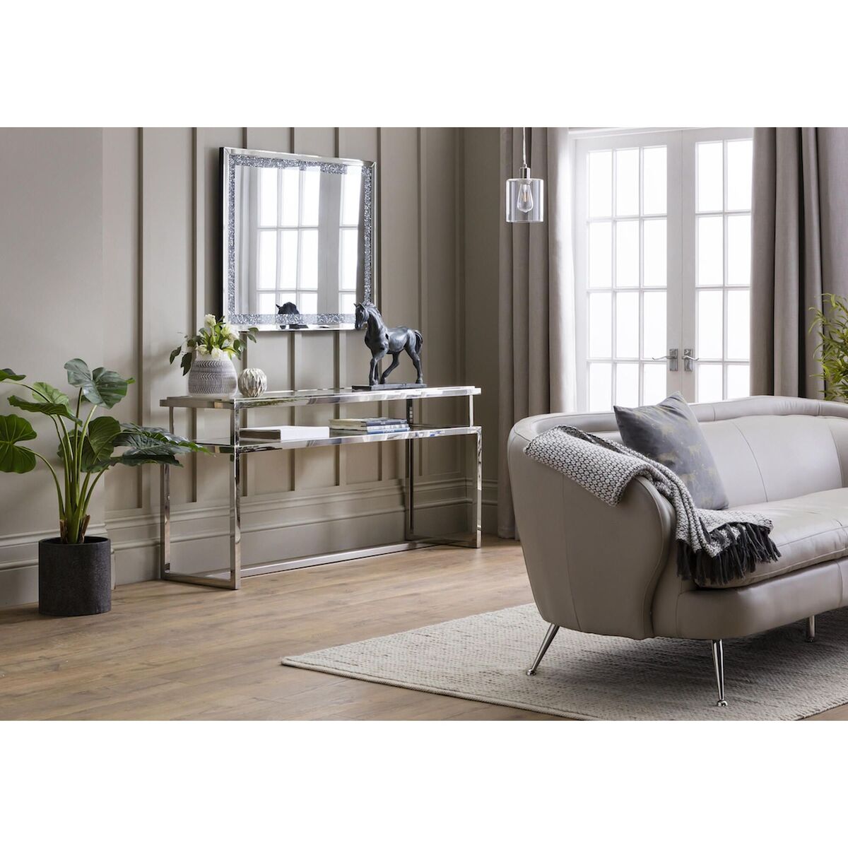 This sleek Cruz Silver Console makes an excellent addition to both modern and contemporary interiors, thanks to its minimalist metallic frame and clean lines. I love it because it offers a polished, understated look that can serve as a stylish focal point in an entryway, hallway, or living room. Practical styling tips would be to keep the top surface uncluttered and add a few decorative accents like a lamp, a vase, or framed art to create visual interest. The lower shelf is perfect for organising books or baskets, making it as functional as it is stylish. Its neutral silver finish blends well with a range of colour palettes, making it a versatile choice for updating or enhancing your space without overpowering it.