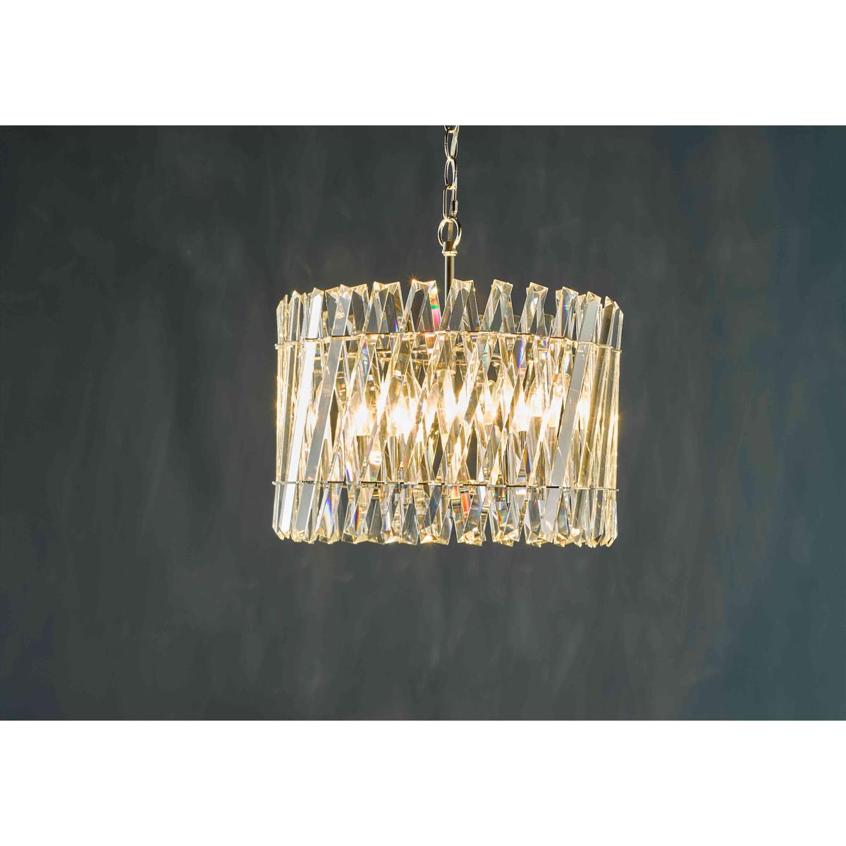 Whether you’re hosting a dinner party or having a relaxed evening in the lounge, this stunning pendant light will rise to the moment beautifully. Why you'll love it Dazzling criss-cross faceted crystal glass and polished nickel frame. Bathes your space in warming light and captivating refracted patterns. Put on a show whatever the occasion with this elegant pendant light. What you need to know Made from steel, polished nickel and crystal glass. Height is adjustable at the point of installation (40-190 cm). Takes 6 x SES CNDL bulbs, max. 40. W. Dust with a soft, lint-free cloth. Dimmable when paired with suitable bulbs. Dimensions Height: 40-190 cm (16-75 inches) Width: 40 cm (16 inches) Depth: 40 cm (16 inches) Weight: 7.5 kg