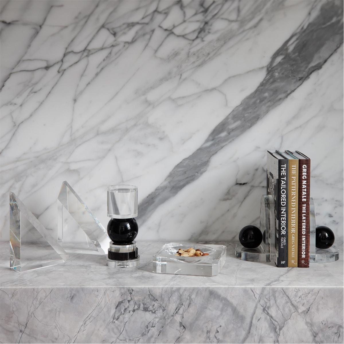I’m a fan of these onyx bookends for their clean lines and mix of clear acrylic with a black stone orb - they feel simultaneously lightweight and substantial. They work particularly well in contemporary, minimalist or monochrome schemes, where you want a touch of refined contrast without overwhelming the shelf. Styling tip: use them on an open bookcase alongside a small stack of coffee-table books in neutral tones, then balance with a single plant or ceramic piece at the opposite end. Their transparent panels won’t compete for attention, so you can layer textures around them - think matte metal frames or woven baskets - and still keep a streamlined look.