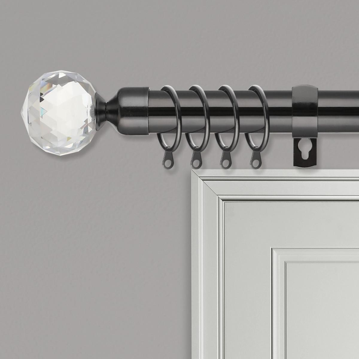 Adjustable metal curtain pole set to fit your window. Easily set up the curtain pole to any length. Adjustable for a perfect fit. Complete curtain rail includes all you need to hang your curtains. Includes curtain pole, brackets, matching curtain rings, finials, wall fittings and instructions. Curtain pole with high shine finish to provide a stylish elegant finish to any room. The large feature finials finish off the sophisticated look. Add a refined finish to your windows & elevate your curtains. Made from high-grade metal that is rust and corrosion-proof, with a superior plated finish. A thick 25mm pole is suitable for all light to heavyweight curtains, drapes, voiles, fabrics & nets. Simply screw in a curtain pole to achieve your desired length and use a telescopic pole to slide precisely to your desired length. Slot on eyelet brackets with tightening grub screw to hold the pole in place.