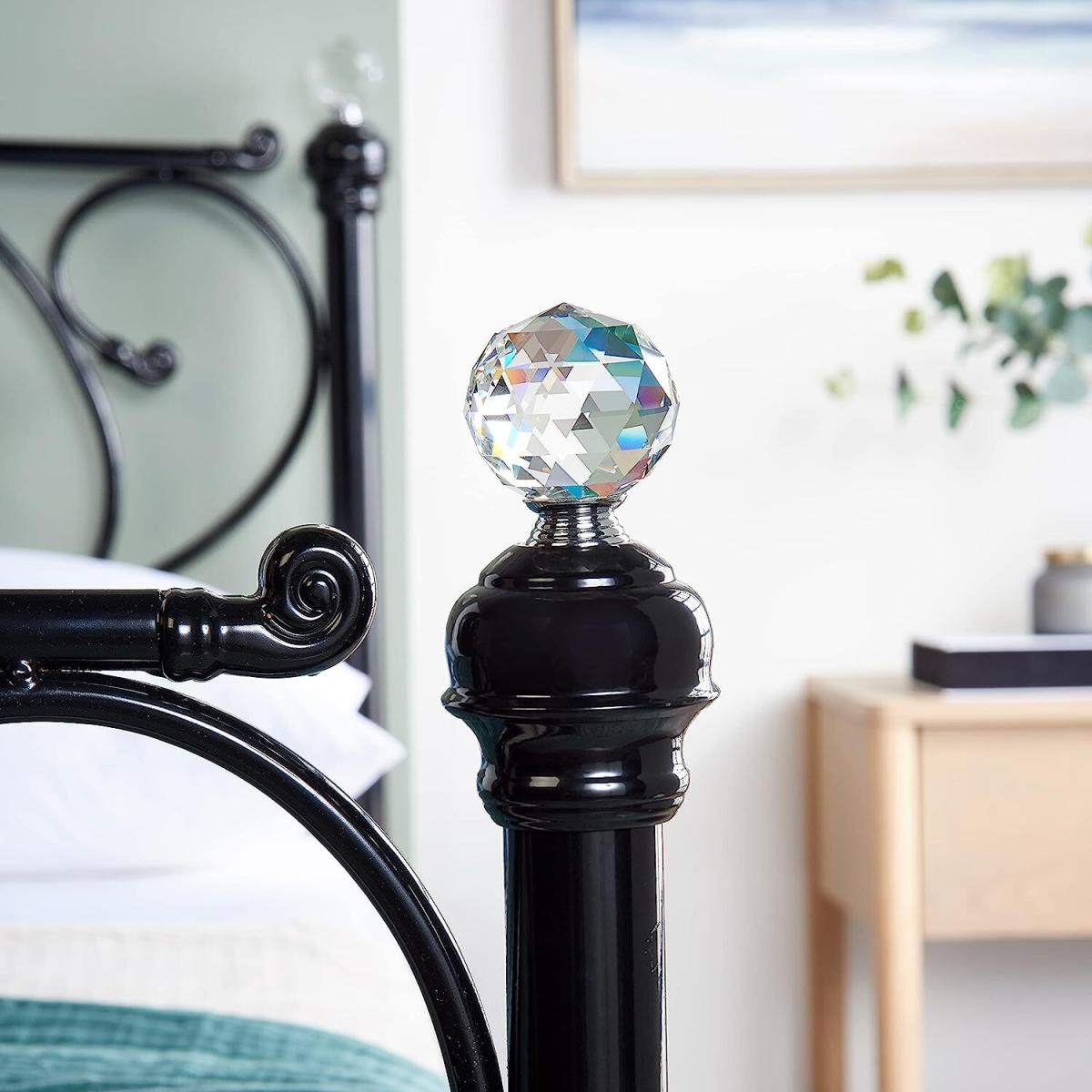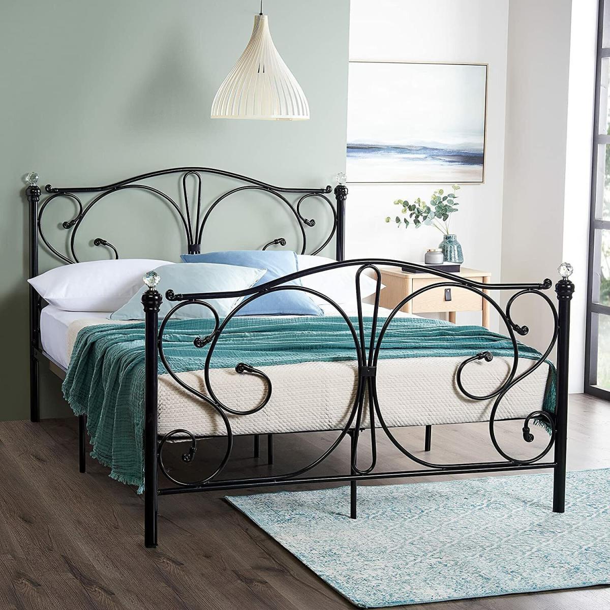 Beautifully designed to blend contemporary and classic styles, this bed is finished off with a deep black coating. The elegant design along with the easy-to-match, neutral colour makes for a statement piece that is sure to fit in effortlessly with your bedroom interiors. The metal bed frame features medieval ironwork on the classic-style headboard and footboard. The four posts are topped off with crystal finials for added quality and beauty, the perfect finishing touch to add a little elegance to your bedroom. This elegant metal bed frame features solid metal slats providing added support and extra comfort to help you get the best nights sleep possible. The perfect base for your mattress to help you drift off to sleep that much faster. Purchase with or without mattress. Mattress option a thick 16cm luxury pocket sprung mattress with independent pocket springs to adapt to weight. Breathable cool touch hypoallergenic cover, anti dust and anti mite. High density 400gsm foam top sleeping layer medium firm rating.
