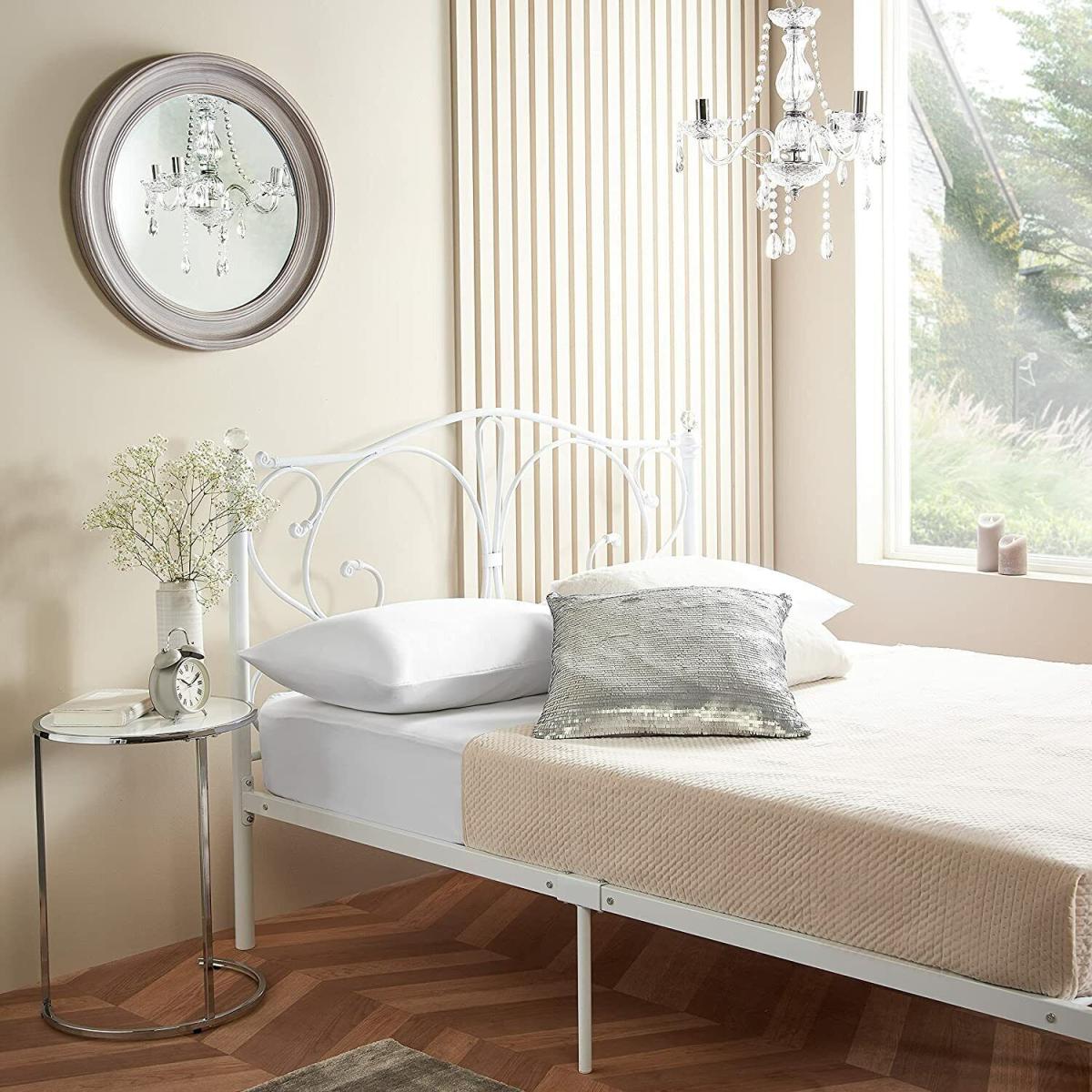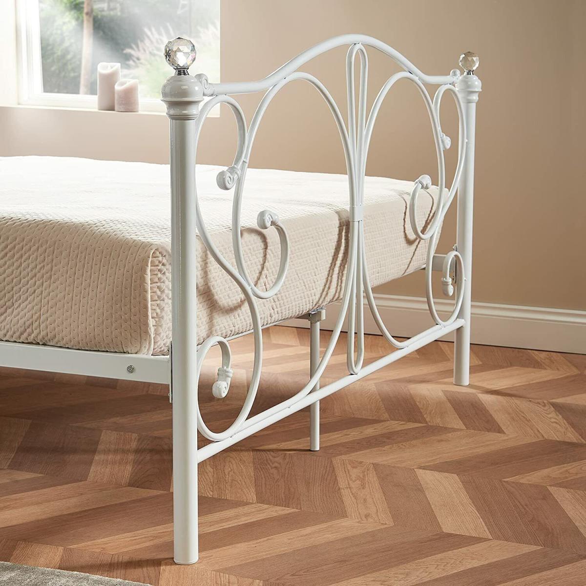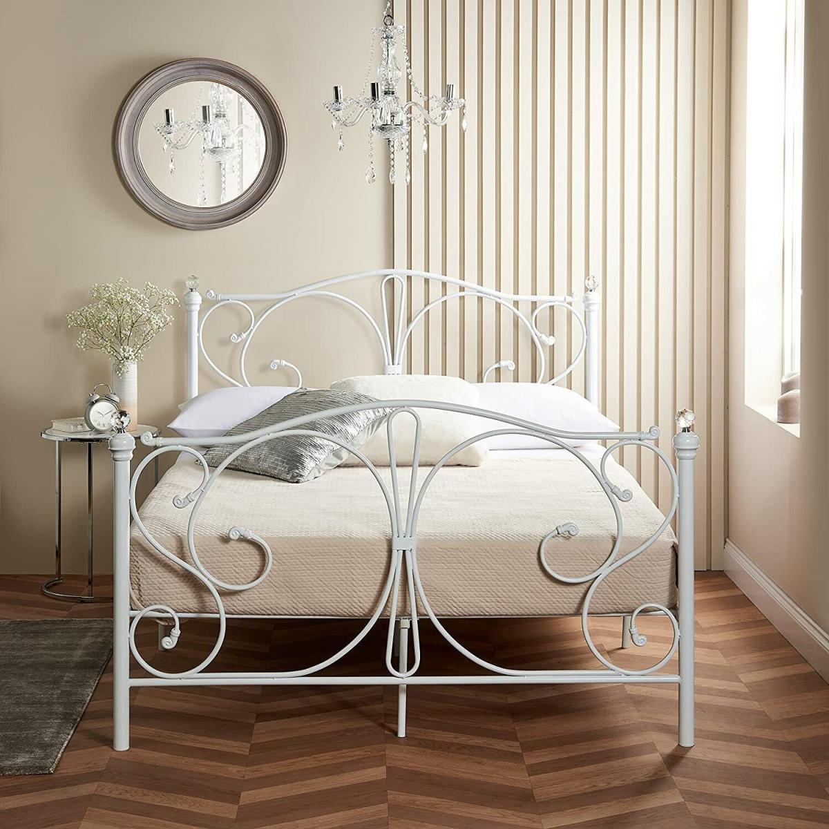 Beautifully designed to blend contemporary and classic styles, this bed is finished off with a deep black coating. The elegant design along with the easy-to-match, neutral colour makes for a statement piece that is sure to fit in effortlessly with your bedroom interiors. The metal bed frame features medieval ironwork on the classic-style headboard and footboard. The four posts are topped off with crystal finials for added quality and beauty, the perfect finishing touch to add a little elegance to your bedroom. This elegant metal bed frame features solid metal slats providing added support and extra comfort to help you get the best nights sleep possible. The perfect base for your mattress to help you drift off to sleep that much faster. Purchase with or without mattress. Mattress option a thick 16cm luxury pocket sprung mattress with independent pocket springs to adapt to weight. Breathable cool touch hypoallergenic cover, anti dust and anti mite. High density 400gsm foam top sleeping layer medium firm rating.