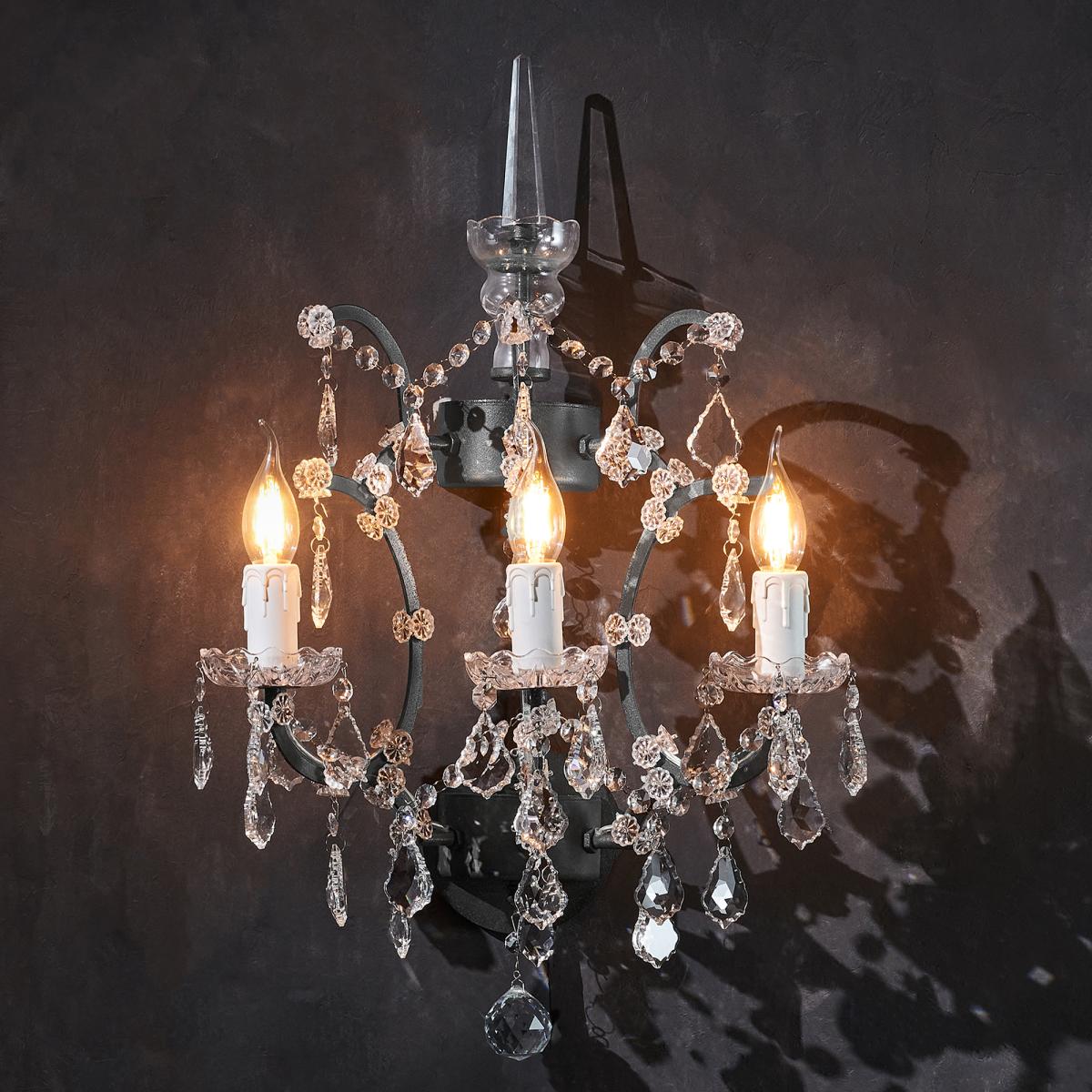 The late Georgian era and its sophisticated designs are reflected upon to create the Crystal Sconce. Each piece from the range is handcrafted and uses design inspiration of late Georgian chandeliers including large crystal baluster centrepieces, precision cut glass crystals, candle lights with corresponding bobeche dishes for decoration. The rustic aged metal patina with antique rust finish is a severe contrast to the romantic characteristics of the light fixture.