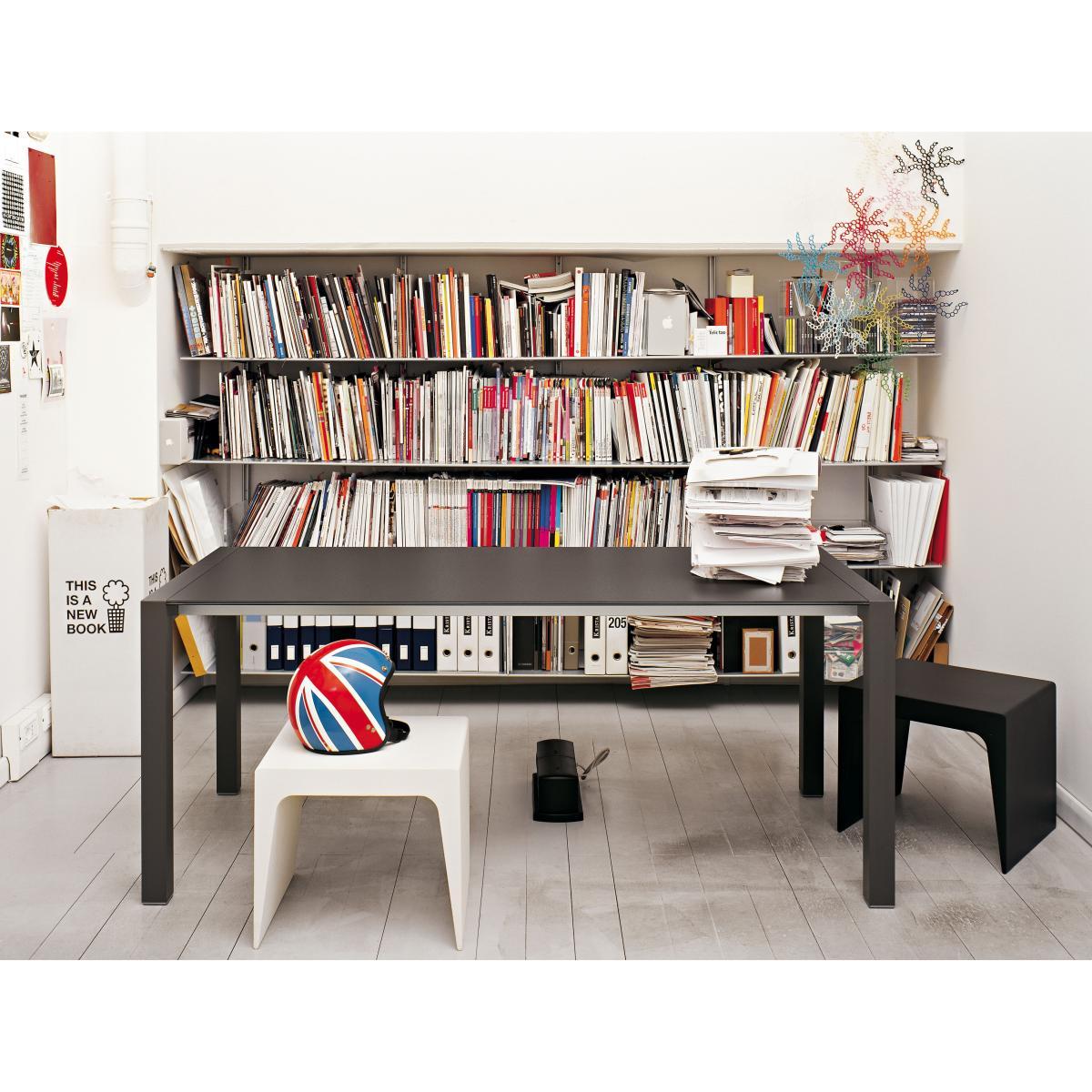 A table and a bench or service top at the same time, CU is a versatile and practical object to use anywhere, also outdoors, next to a sofa, near a bed or even in the garden or a public place. Made of rigid moulded polyurethane, a material which is very sturdy and easy to clean, it is available in two sizes and three colours.