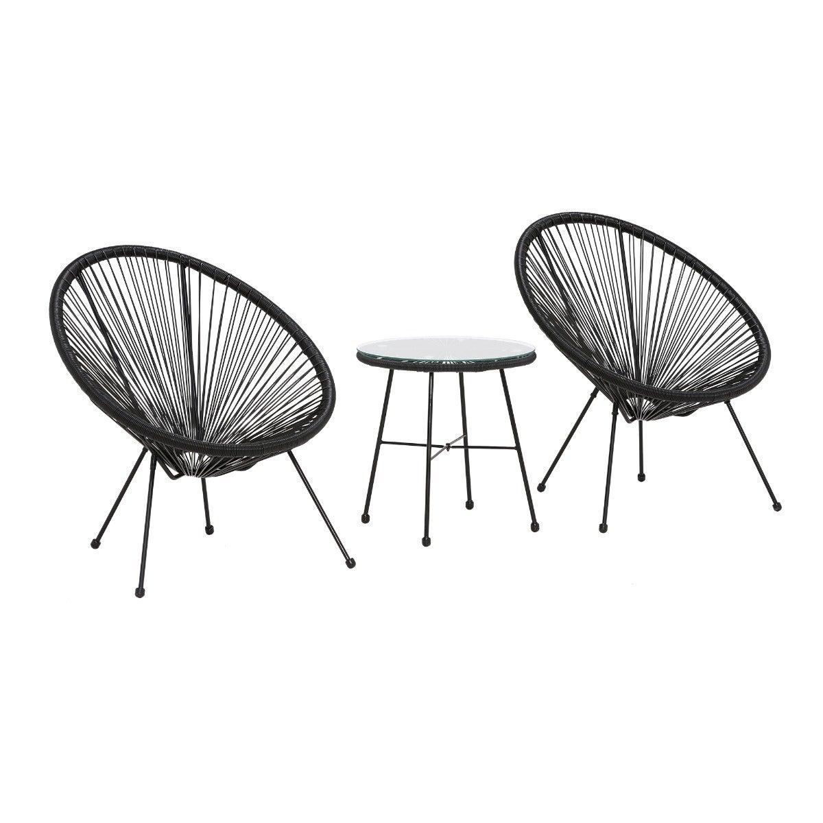 Design. The Cuba Garden Bistro Set in Black is the perfect minimalist addition to your outdoor space, bringing a touch of opulent style. The unusual shape to the chairs catches the eye instantly, with a soft to the touch finish ensuring it is still every bit as comfortable as it is fashionable. If you have a smaller space to work with too then the Black Rio Garden Bistro Set is the ideal choice.