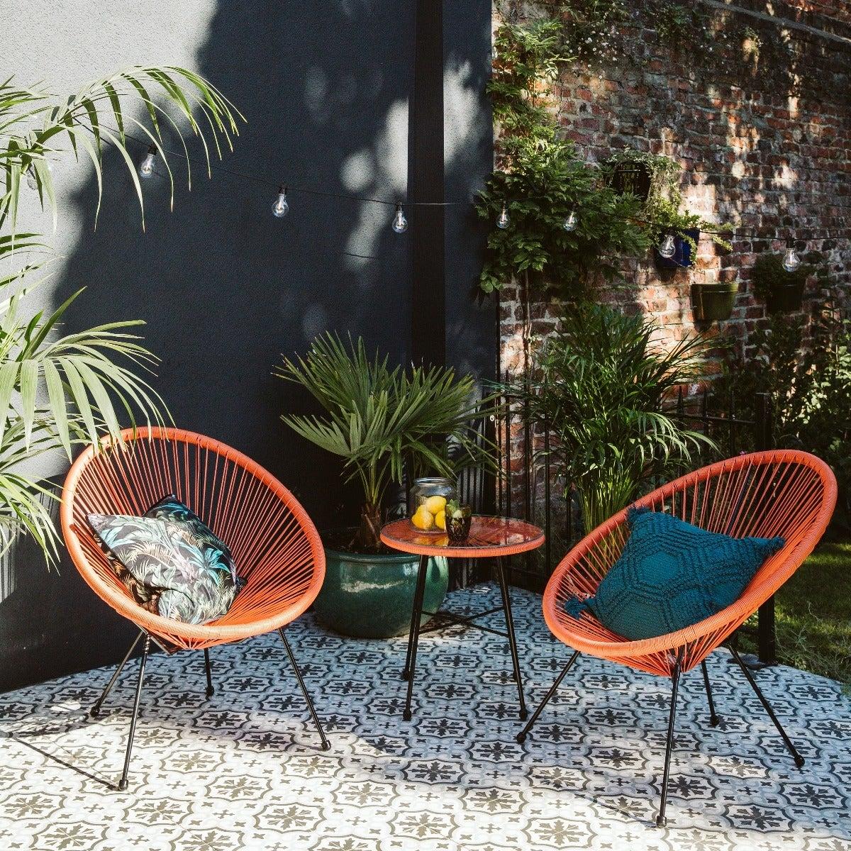 I love the Cuba Garden Bistro Set for its bold, playful colour and modern design that works equally well in contemporary or eclectic garden settings. Its compact size makes it ideal for smaller patios or balconies, and the vibrant orange adds a lively pop of colour that can brighten up any outdoor space. For styling, consider pairing it with neutral accessories like white or grey cushions to let the chairs stand out, or coordinate with other bold outdoor pieces for a cohesive look. It’s versatile enough to suit relaxed weekends or alfresco dinner parties, and its practical build makes it easy to move and maintain. A great choice to bring colour and comfort to any outdoor lounge!