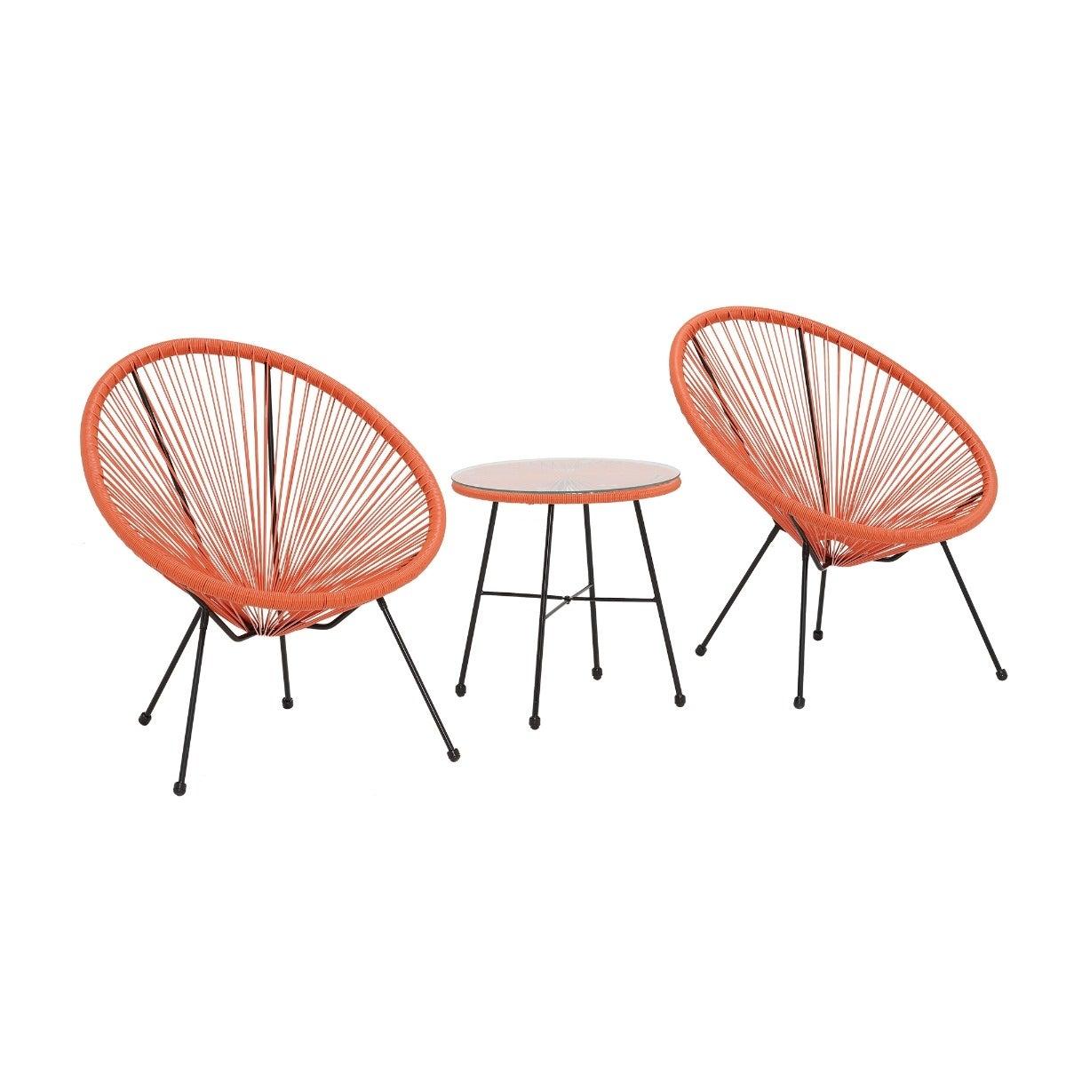 Design. Make a daring statement with the Orange Cuba Garden Bistro Set. With 2 chairs and a handy table, you can enjoy a beverage on a hot summer’s day in style. Crafted from modern synthetic weave which is made to be hardwearing whatever the weather, the chairs are also lightweight and easy to manoeuvre around. The Cuba Garden Bistro Set in Orange is minimalist and on trend, the ideal way to add a splash of colour and liven up your outdoor space.