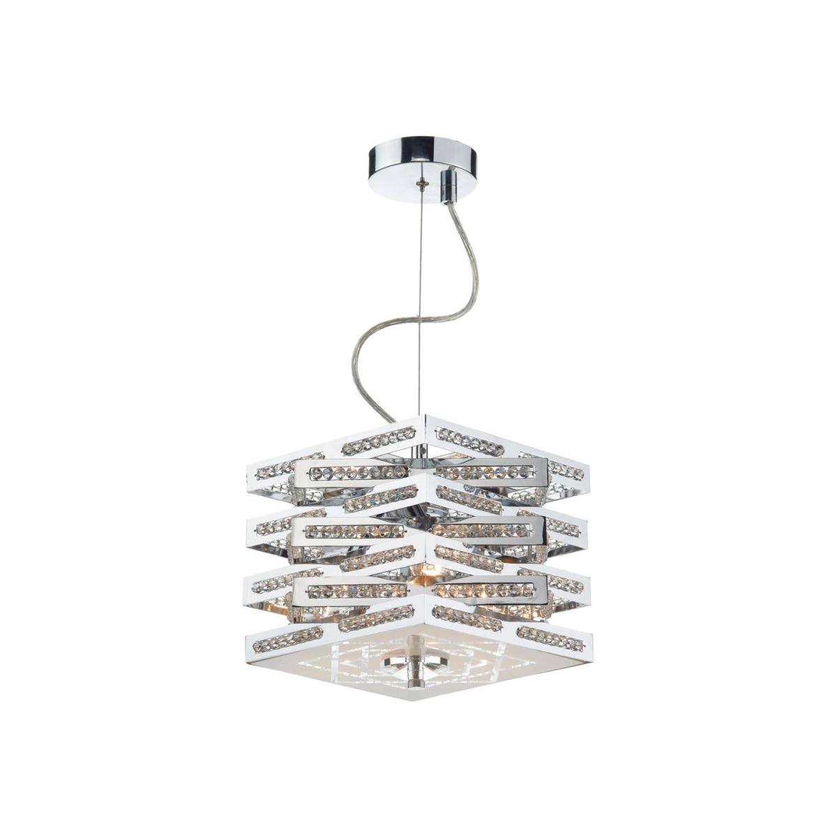 The Cube 3 Light Ceiling Light is a beautiful ceiling light fitting finished in polished chrome and crystal. The versatile ceiling light can either be mounted as a semi flush ceiling light or a pendant ceiling light, making it suitable for differing ceilings heights. Seven polished chrome square trims are stacked in opposing directions to form a unique design which allows the light to filter through. Each square trim boasts crystal bead detailing which completes the glamorous style. A frosted glass shade at the base of the light conceals the bulbs inside and allows the light to diffuse through evenly. The Cube 3 Light Ceiling Light suspends from the ceiling at a maximum height of 1000mm and can be fitted at a minimum height of 300mm. This light requires 3 x 40w (or equivalent) candle SES bulbs. där Product Code: CUB0350. The Cube 3 Light Ceiling Light is a beautiful ceiling light fitting finished in polished chrome and crystal. The versatile ceiling light can either be mounted as a semi flush ceiling light or a pendant ceiling light, making it suitable for differing ceilings heights. Seven polished chrome square trims are stacked in opposing directions to form a unique design which allows the light to filter through. Each square trim boasts crystal bead detailing which completes the glamorous style. A frosted glass shade at the base of the light conceals the bulbs inside and allows the light to diffuse through evenly. The Cube 3 Light Ceiling Light suspends from the ceiling at a maximum height of 1000mm and can be fitted at a minimum height of 300mm. This light requires 3 x 40w (or equivalent) candle SES bulbs. där Product Code: CUB0350.
