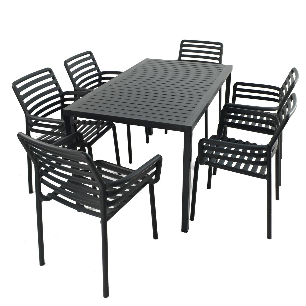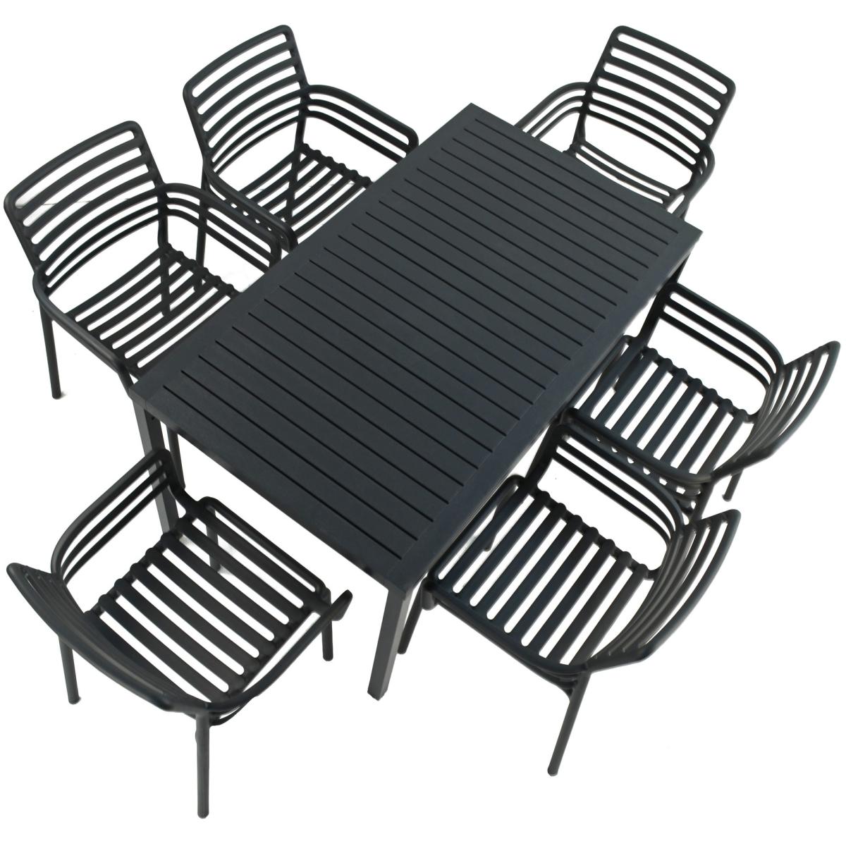 Cube Dining Table with 6 Doga Chair Set Anthracite Black