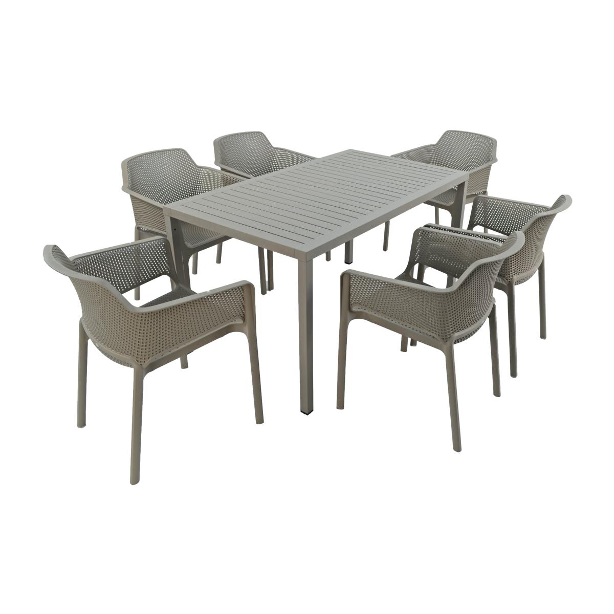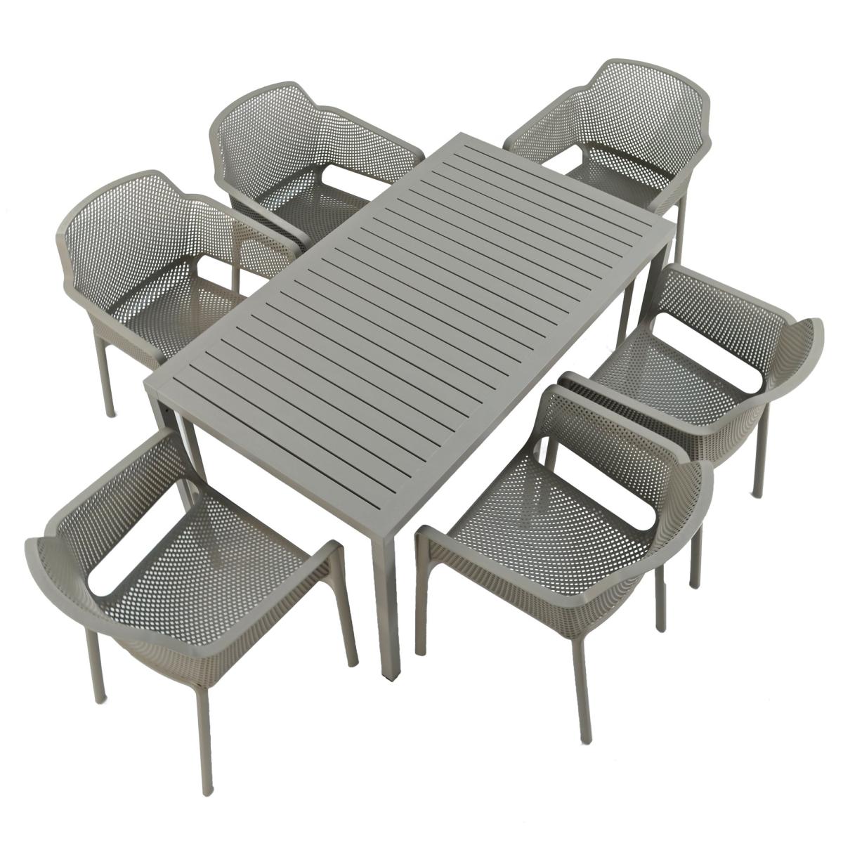Cube Dining Table with 6 Net Chair Set Turtle Dove Grey