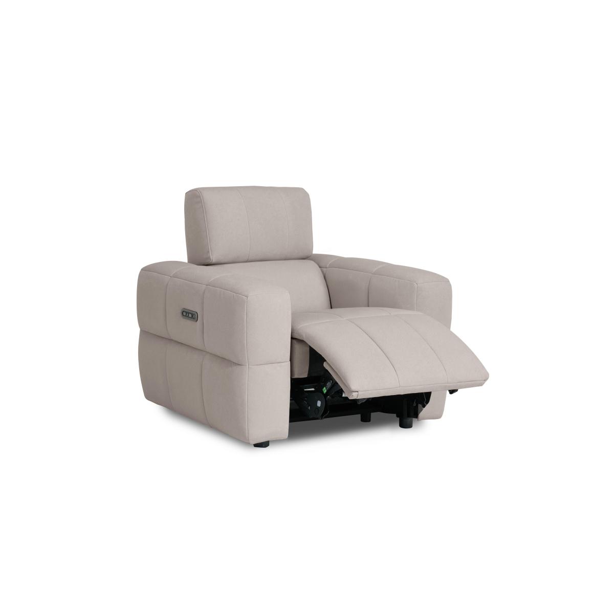 Who knew that cubes could be so comfy? In our Cube collection of sofas, corner sofas, chaise sofas and armchairs, stylish geometric lines and angles meet sumptuous curves for a look that’s eye-catching and very inviting. And with power recliners and power headrests as well as pocket spring seat cushioning, the comfort factor is off the scale. The Cube collection is also modular, which means that if you don’t see the exact sofa you want, you can go bespoke and create one that fits your space and suits your family. Available in 100% leather and fabric, our very cool Cube range is handmade exclusively for Furniture Village. Bold lines, square arms and geometric stitching can’t hide the fact that this armchair with a power recliner and a power headrest is the comfiest cube around. Handmade for Furniture Village. Why you'll love it Striking lines meet fabulous curves in our very cool Cube collection. This modern armchair’s power recliners promise the ultimate in effortless comfort. And you’re upgraded. Enjoy perfect-positioning power headrests as standard. Pocket spring seat cushioning offers superior comfort and support. Clever stitching detail accentuates the bold cube look. Built-in USB device charging. In a huge choice of fashionable upholstery fabrics. Also available with 100% leather upholstery. Made entirely by hand. Exclusively available at Furniture Village. A modular collection. This fabric power recliner chair is part of our Cube range. What you need to know Medium comfort level. Seat suspension: sinuous spring. Seat cushioning: pocket spring, foam and Dacron. Cushioning is fixed. Back support: webbing. Back cushioning: foam and Dacron. Cushioning is fixed. Arm cushioning: foam and Dacron. Cushioning is fixed. Back and feet are removable. Fixed seat and back cushions require smoothing and straightening regularly. To smooth and straighten fixed cushions, punch the back cushion’s top two corners and the seat cushion’s outer two corners, and pinch outwards. Please allow time for new recliners to ease. Minor gaps are necessary to ensure ease of recliner motion and may be exaggerated depending on floor type. Some fabrics can show wear on areas of more use or in direct sunlight. Flattening and shading of heavy wear areas on pile fabrics is unavoidable. Clean regularly using a soft brush or vacuum with the curtain attachment. Deal with any spills promptly. Professional cleaning advised for oil- and grease-based stains. Please read our upholstery care guide for more advice. Item code: CUBECHPPFAB-043