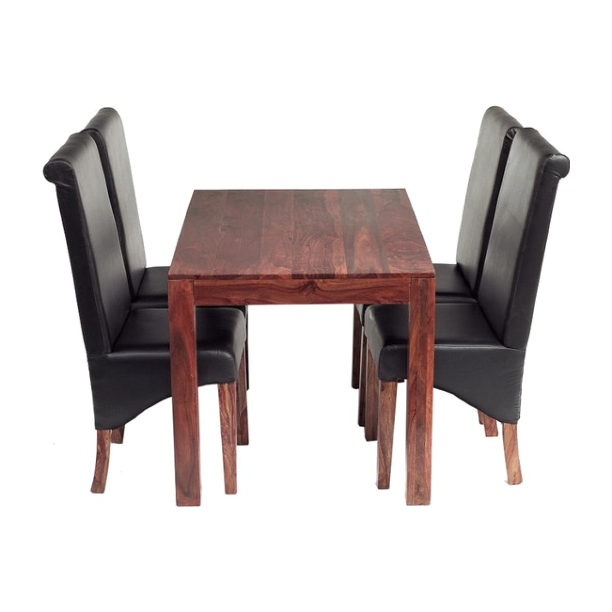 Cube Indian 4 Ft Dining Set with 4 Leather Chairs - Brown