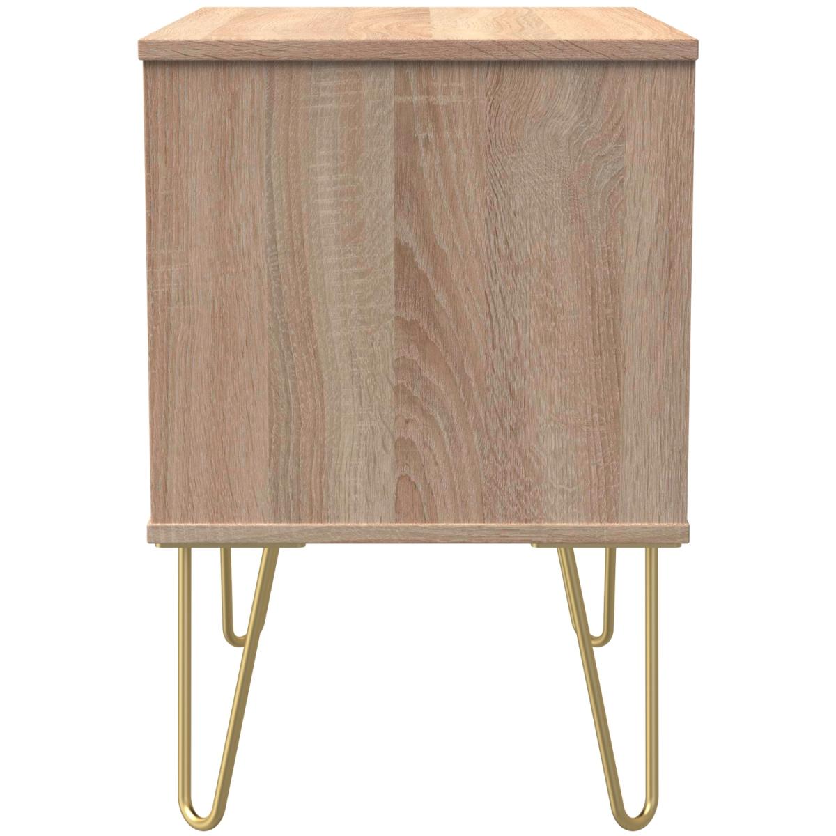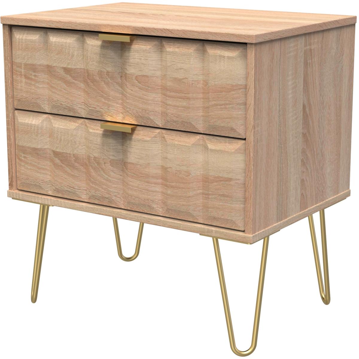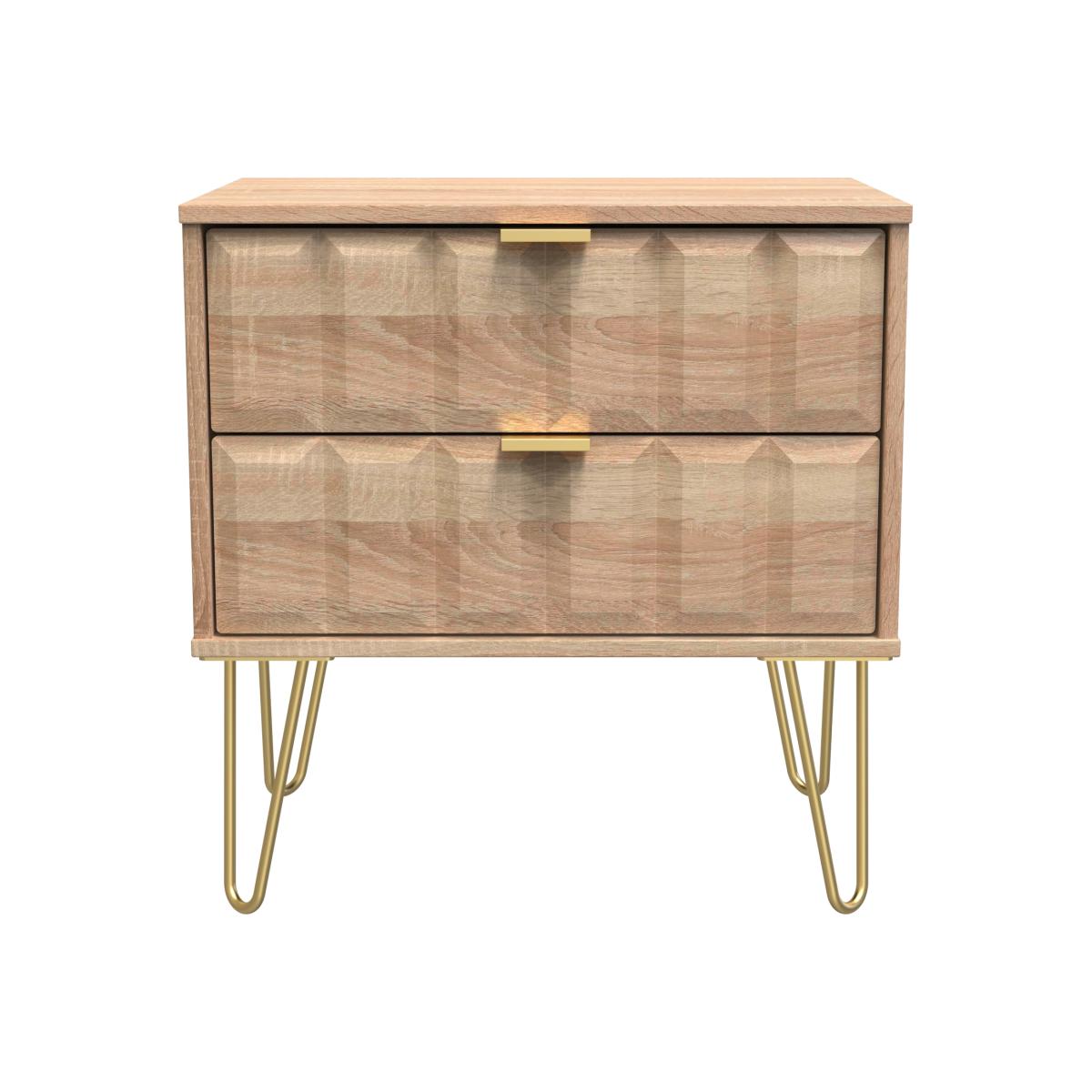 This 2 drawer bedside cabinet is wider than normal for added practicality. Perfect for any bedside or as a free standing storage unit. A modern and distinctive range. Named for the unique "Cube" patten of the drawer and door fronts. Also features Gold Metal Handles and Gold Hairpin Legs. Comes in a wide range of colours including eye cathching two tone colour combinations. All our furniture is made in the United Kingdom, to the highest quality. It is delivered direct to your location of choice by one of our two man delivery teams, and come full assembled (although legs may be removed to prevent damage in transit).